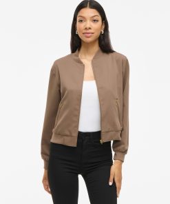 VILA Women’s Vicara Coated Biker Jacket | Coffee Bean