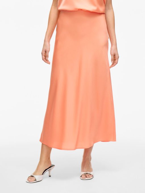 VILA Women’s Viellette High Waist Midi Skirt | Cadmium Orange