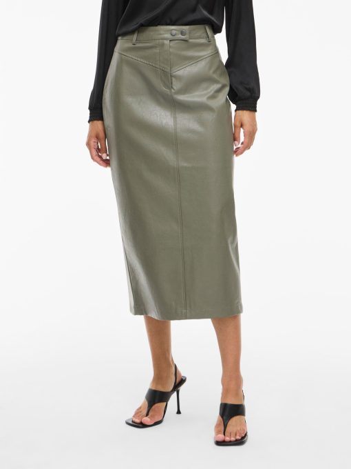 VILA Women’s Vilillian Coated Midi Skirt | Dusty Olive