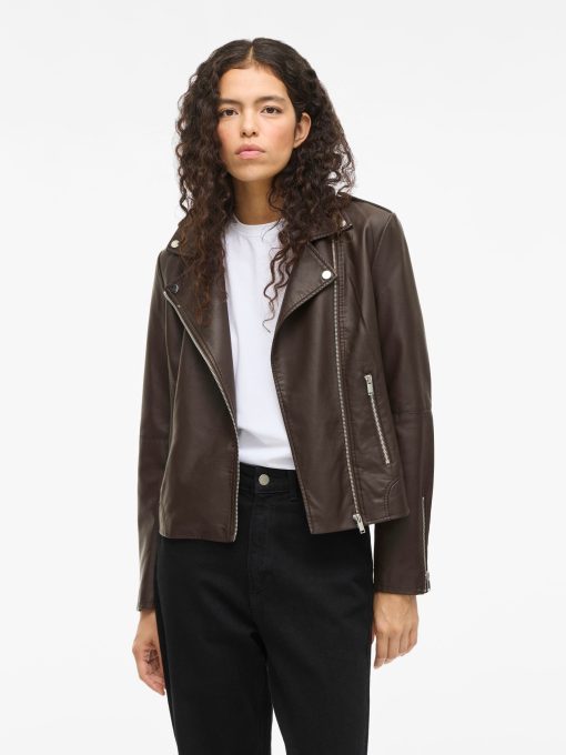 VILA Women’s Vicara Coated Biker Jacket | Coffee Bean
