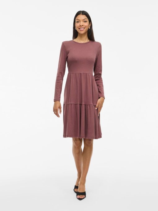VILA Women’s Long Sleeved Knee-length Dress | Rose Brown