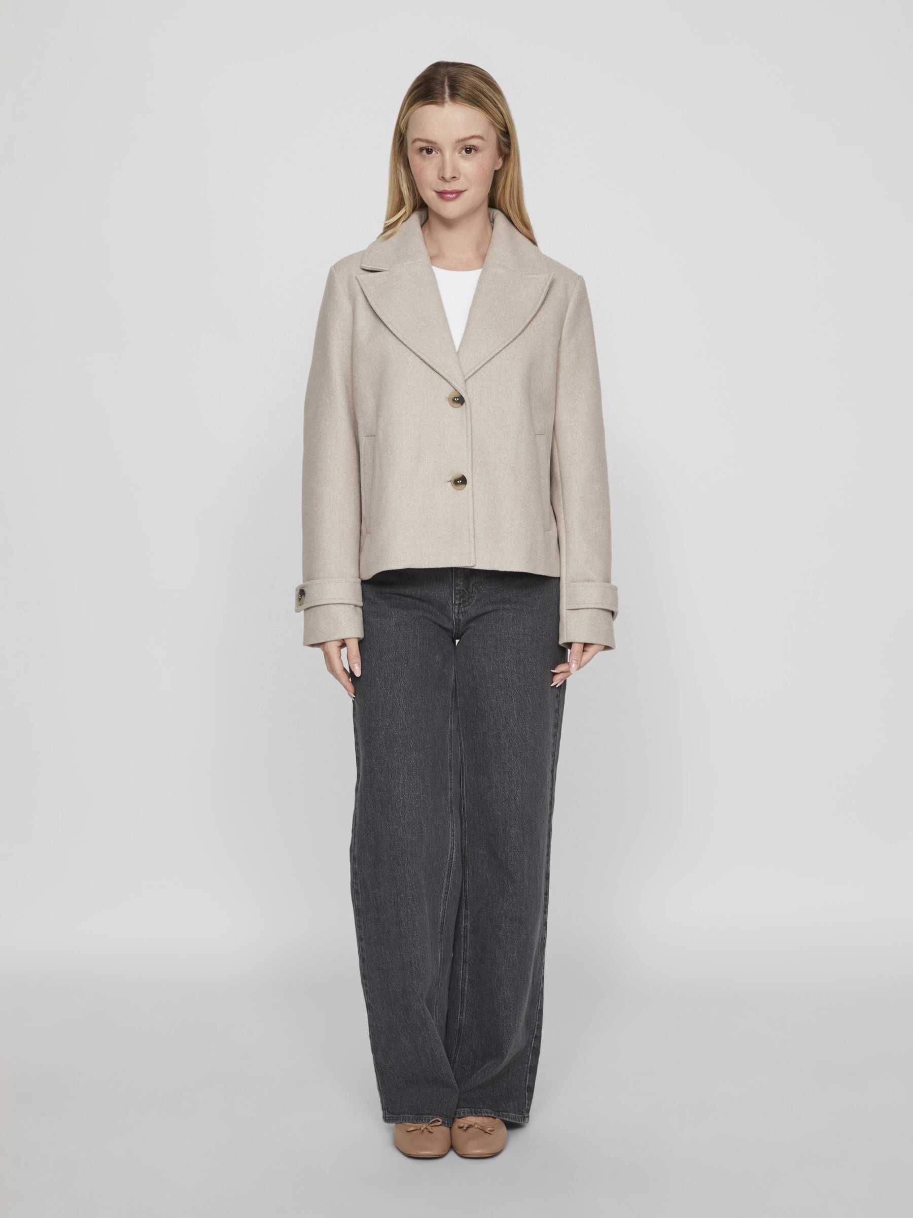 VILA Women’s Button Front V-neck Jacket | Natural Melange