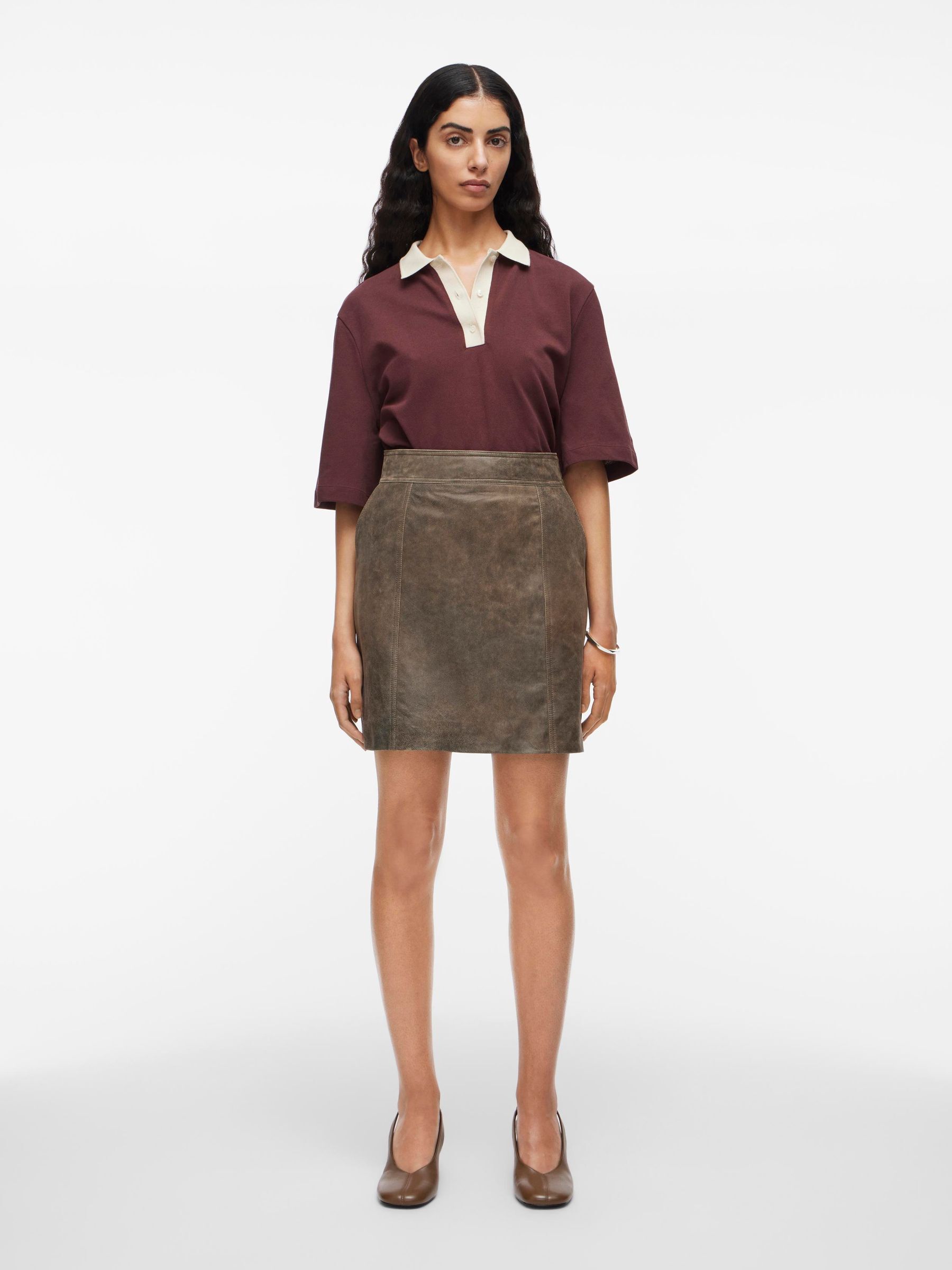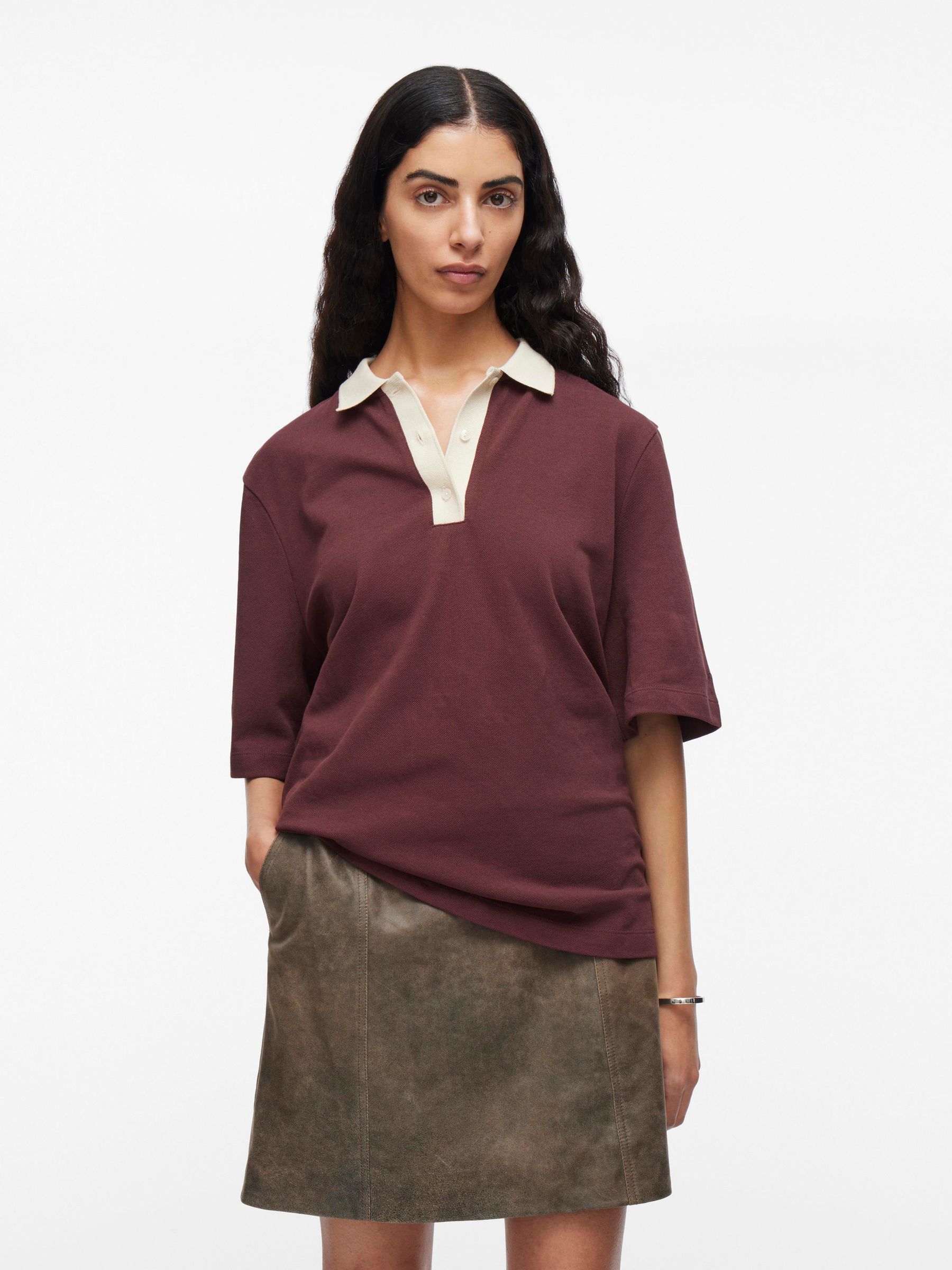 VILA Women’s Cotton Polo T-shirt | Decadent Chocolate