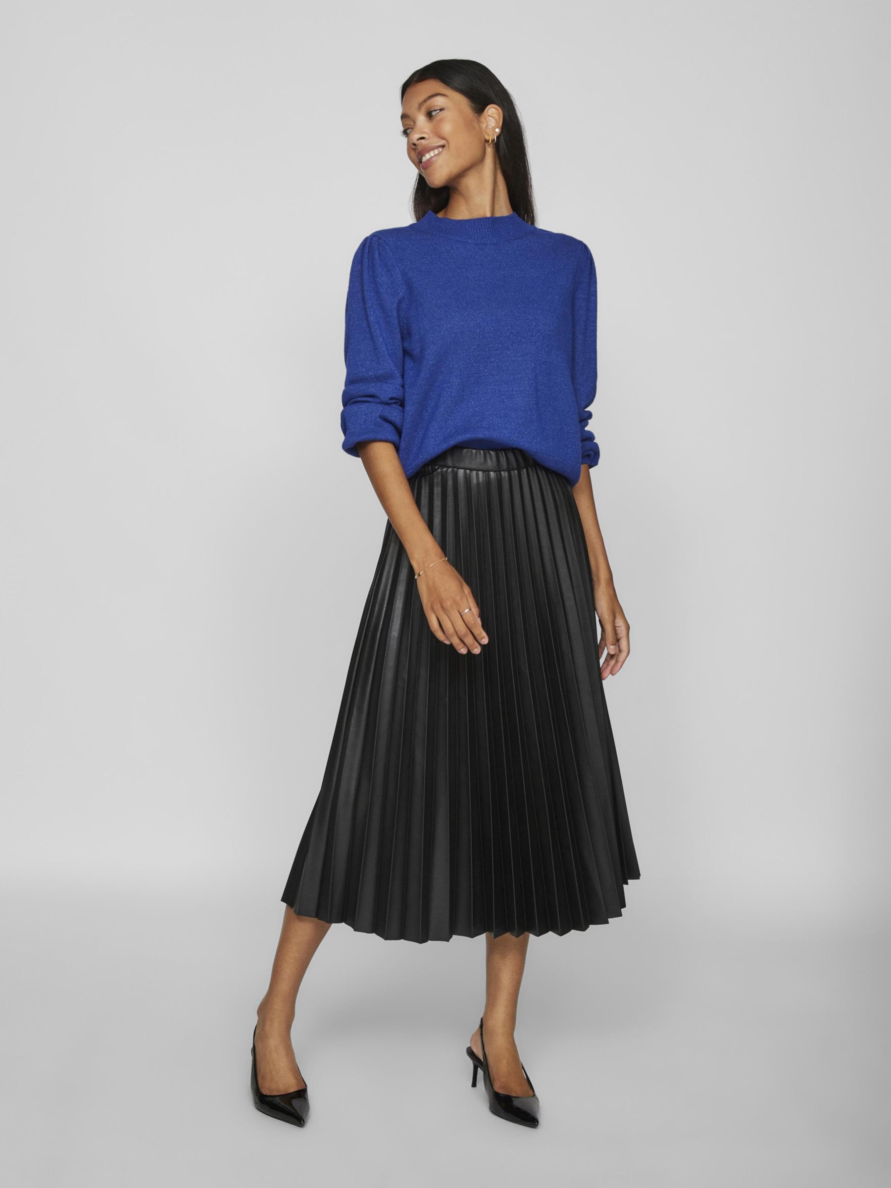 A knitted jumper is the best remedy for cold days. This high neck jumper will not only keep you warm, but make you look fashionable and stylish with it’s balloon sleeves.