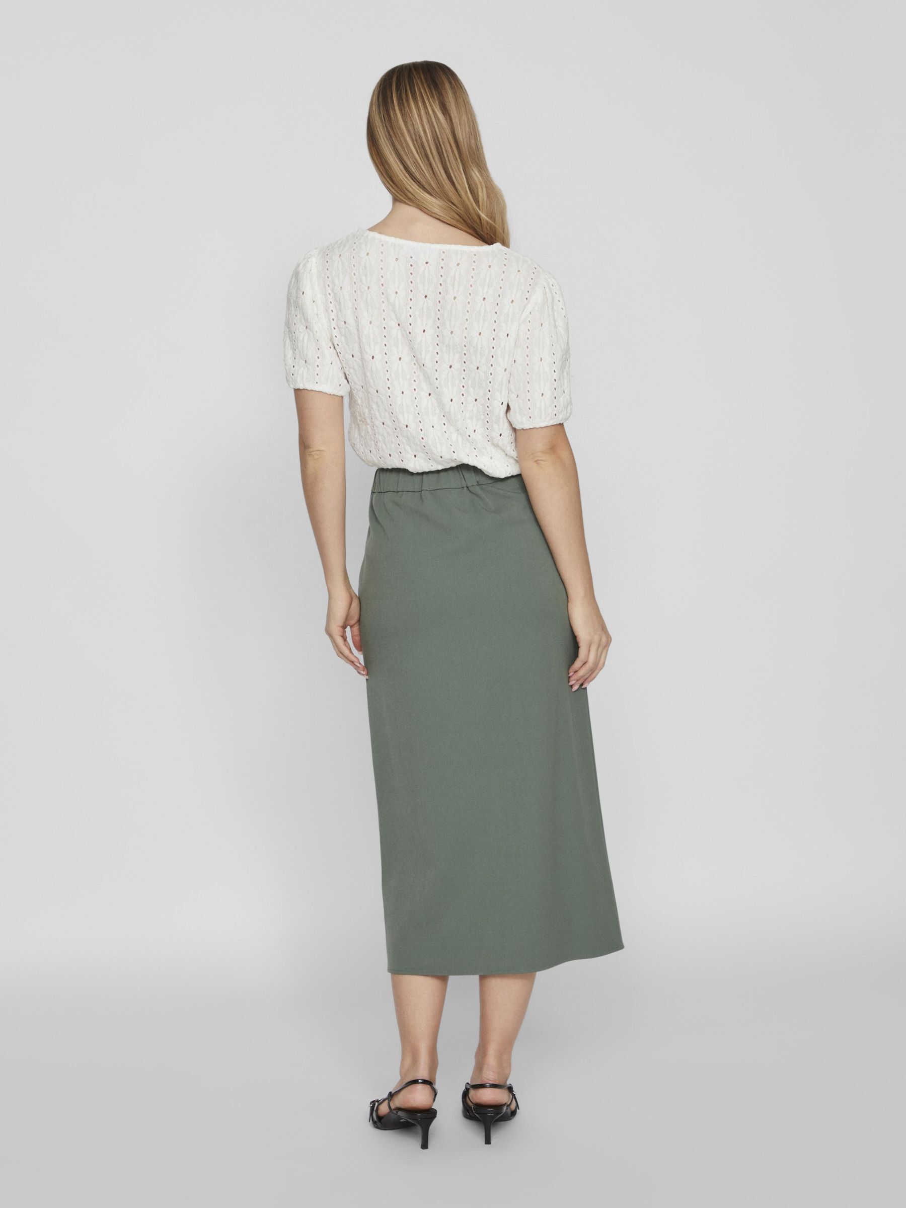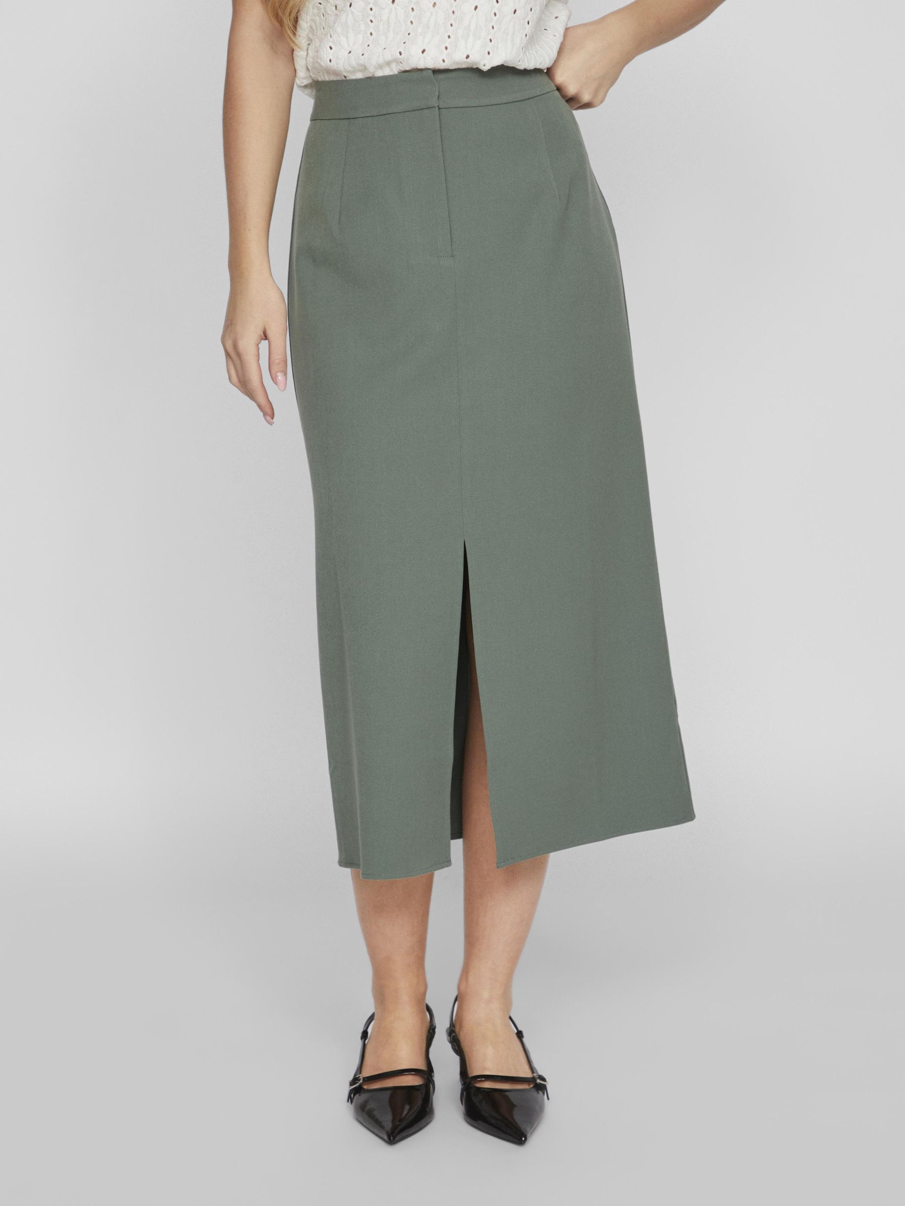 • High waist midi skirt• Front slit detail• Zip-up fly with hook and button fastening• Stretch-back waist• Regular fit • Length: 129 cm in size 38