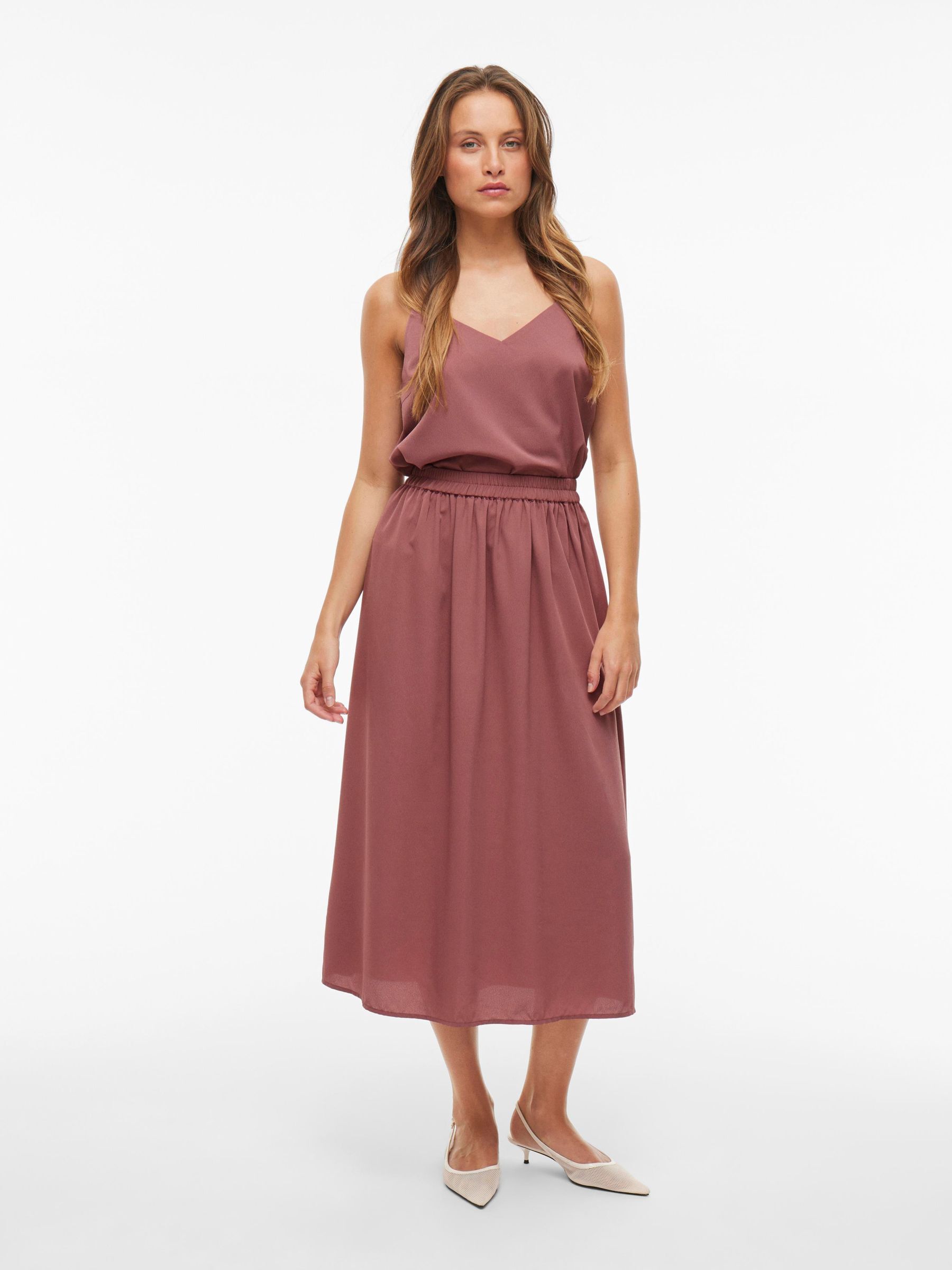 • High waist midi skirt• Elastic waistband• Light fabric• Regular fit• Length: 85 cm in size 38