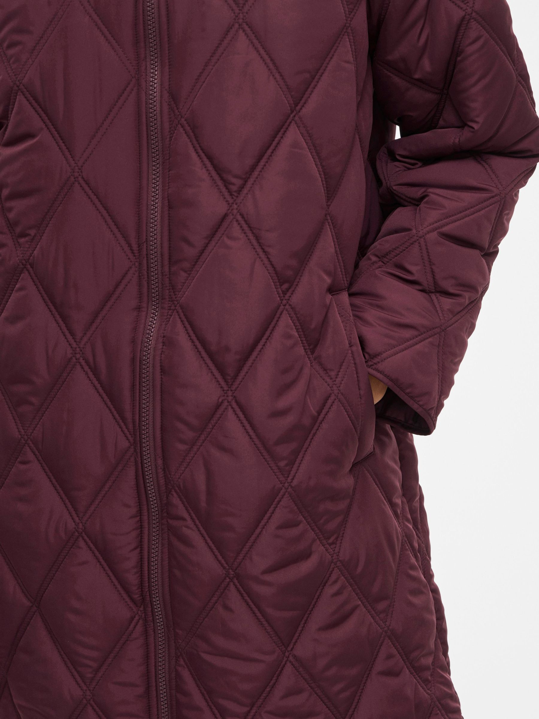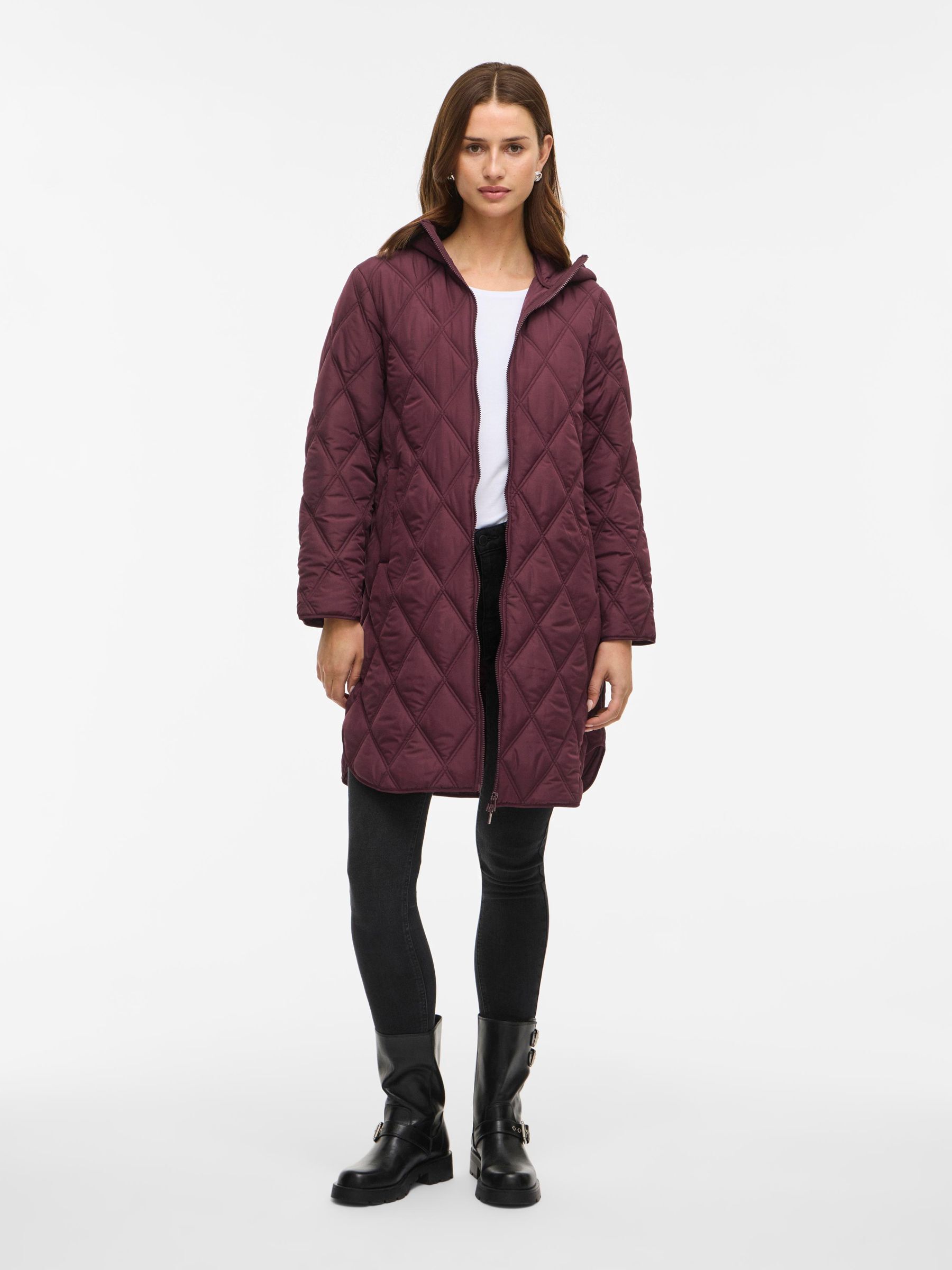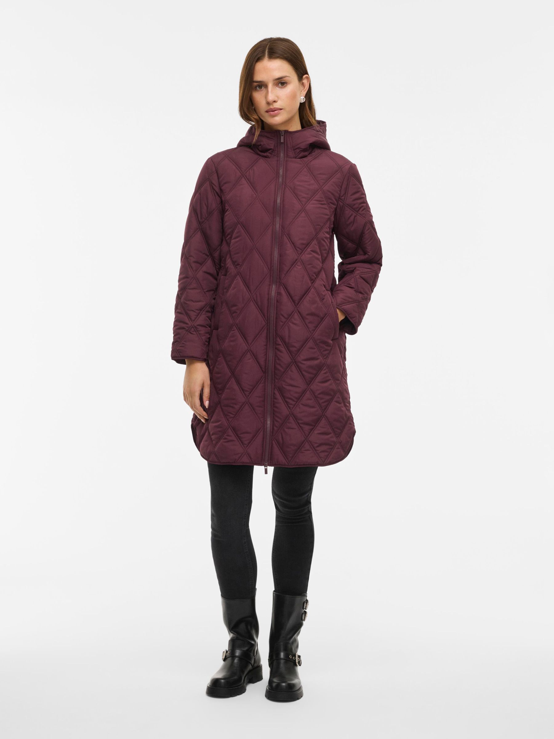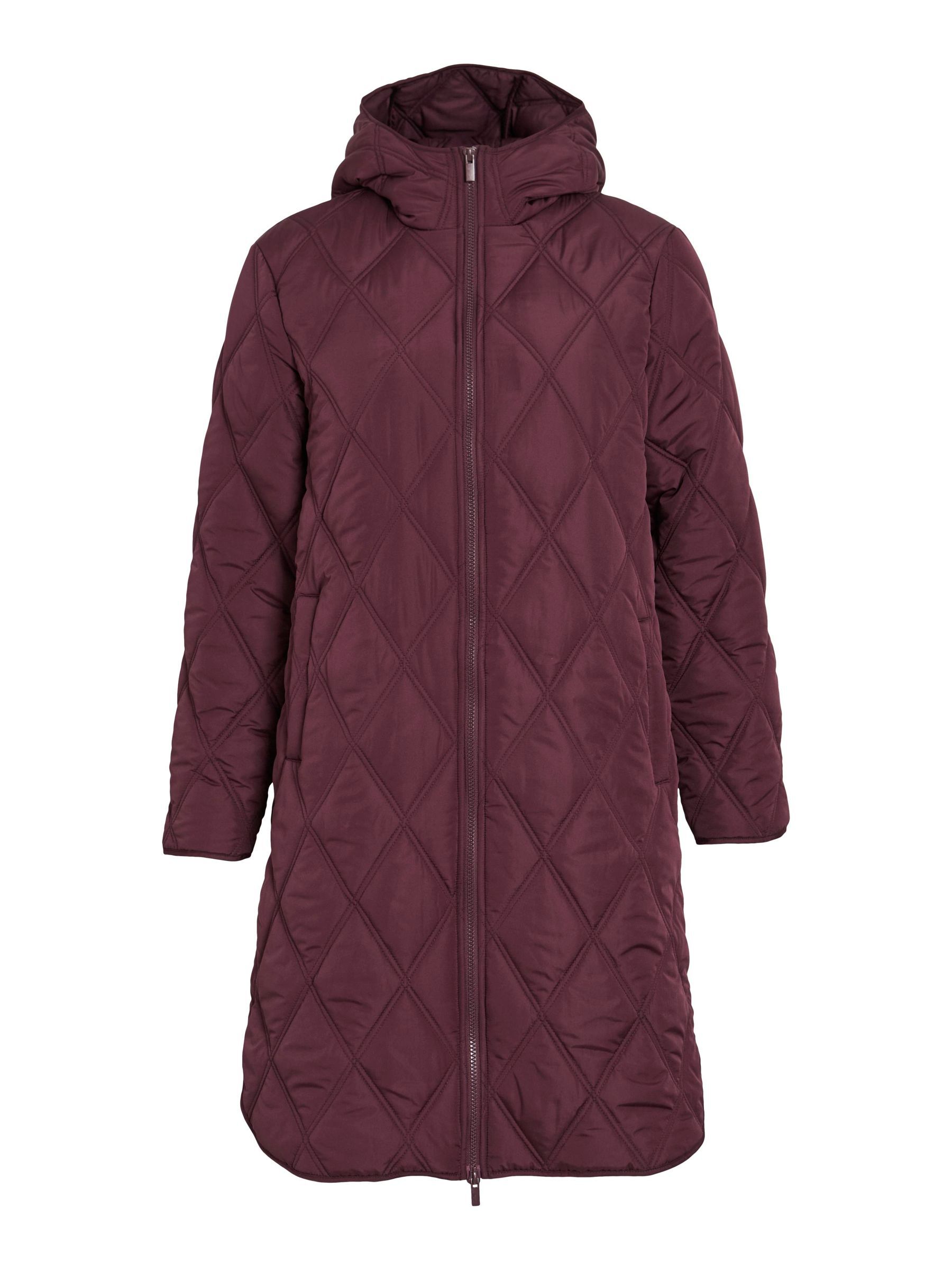 • Quilted coat with hood• Front zipper closure• Zipper open from top and bottom• Open front pockets• Regular fit• Length: 100 cm in size 38• Sleeve length: 62 cm in size 38