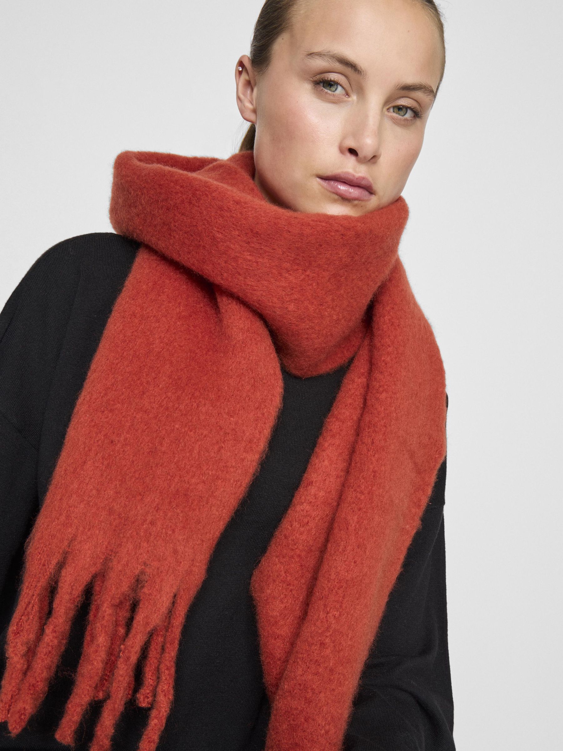 – Oversized scarf- Fringe detail- Super soft fabric- Width:34 cm- Length: 214 cm