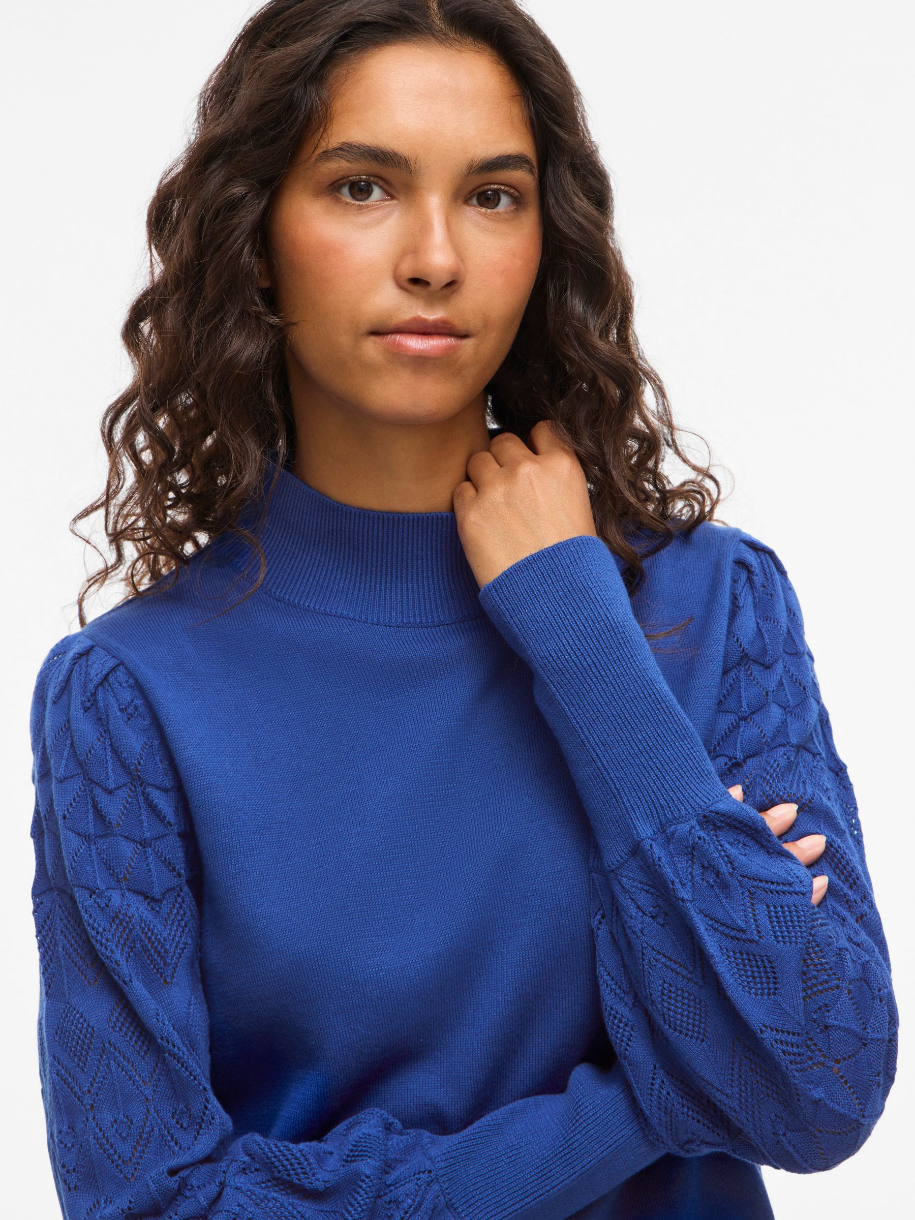 • Pointelle knitted pullover• High neck• Ribbed trim• Regular fit• Length: 60 cm in size M• Sleeve length: 66 cm in size M