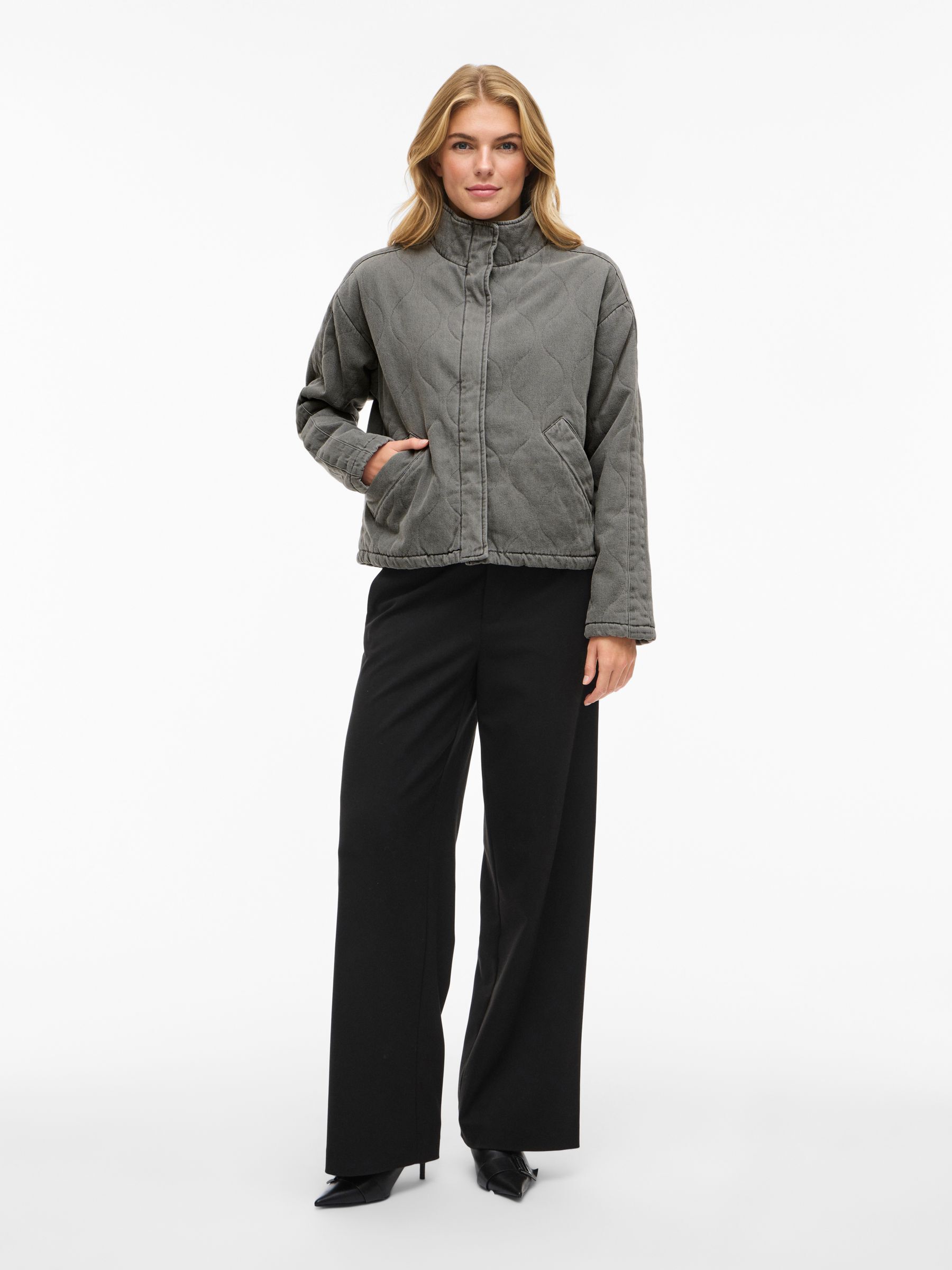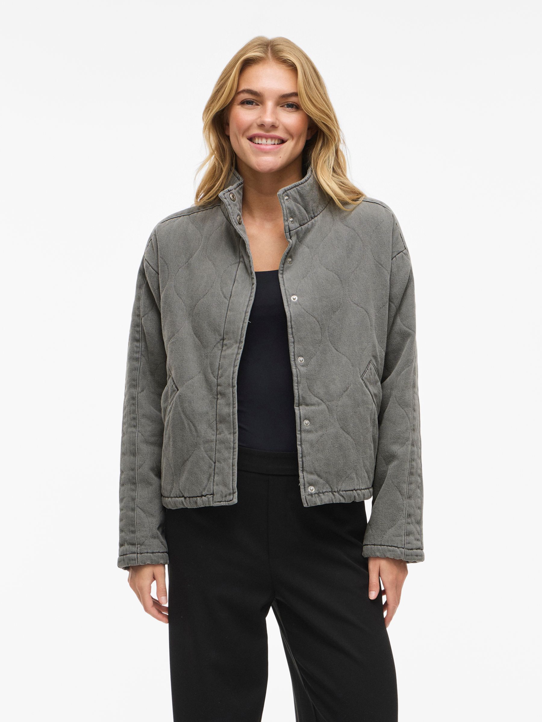 VILA Women’s Viambella Quilted Denim Jacket | Light Grey Denim
