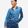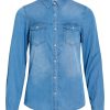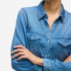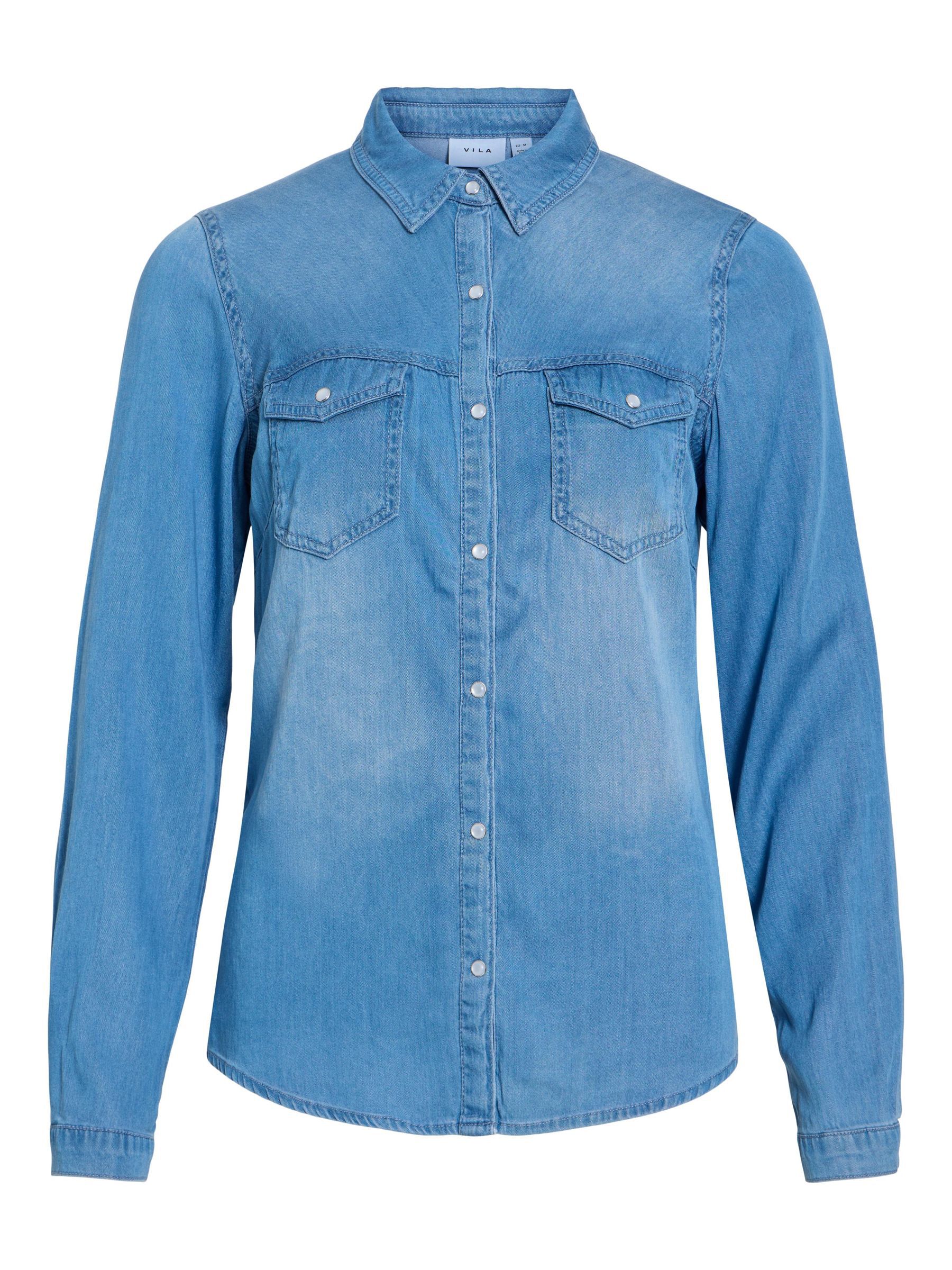 – Style name: VIBISTA- Denim shirt- Press buttons- Pockets at the chest- Long sleeves with button at the bottom- Length: 70 cm in size M- Sleeve length: 63 cm in size M- Our model is 179 cm tall and wears size M
