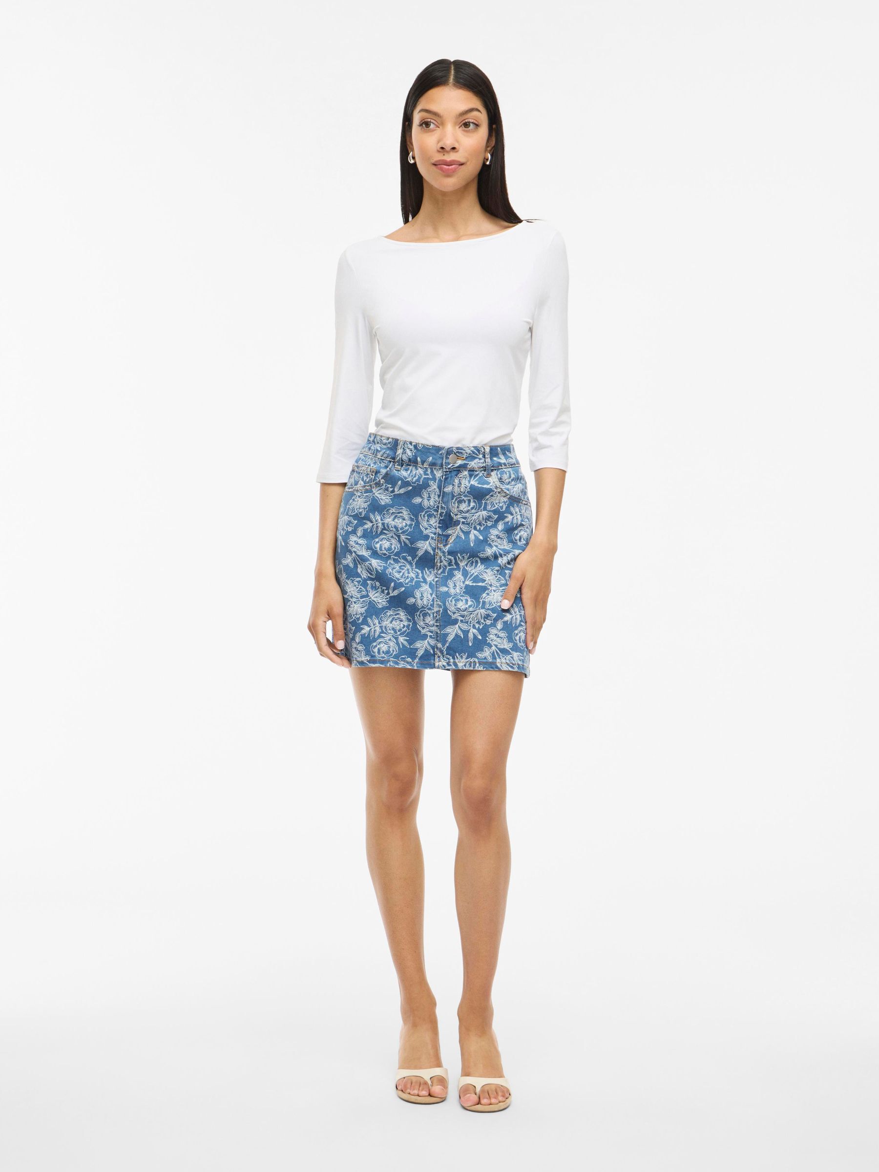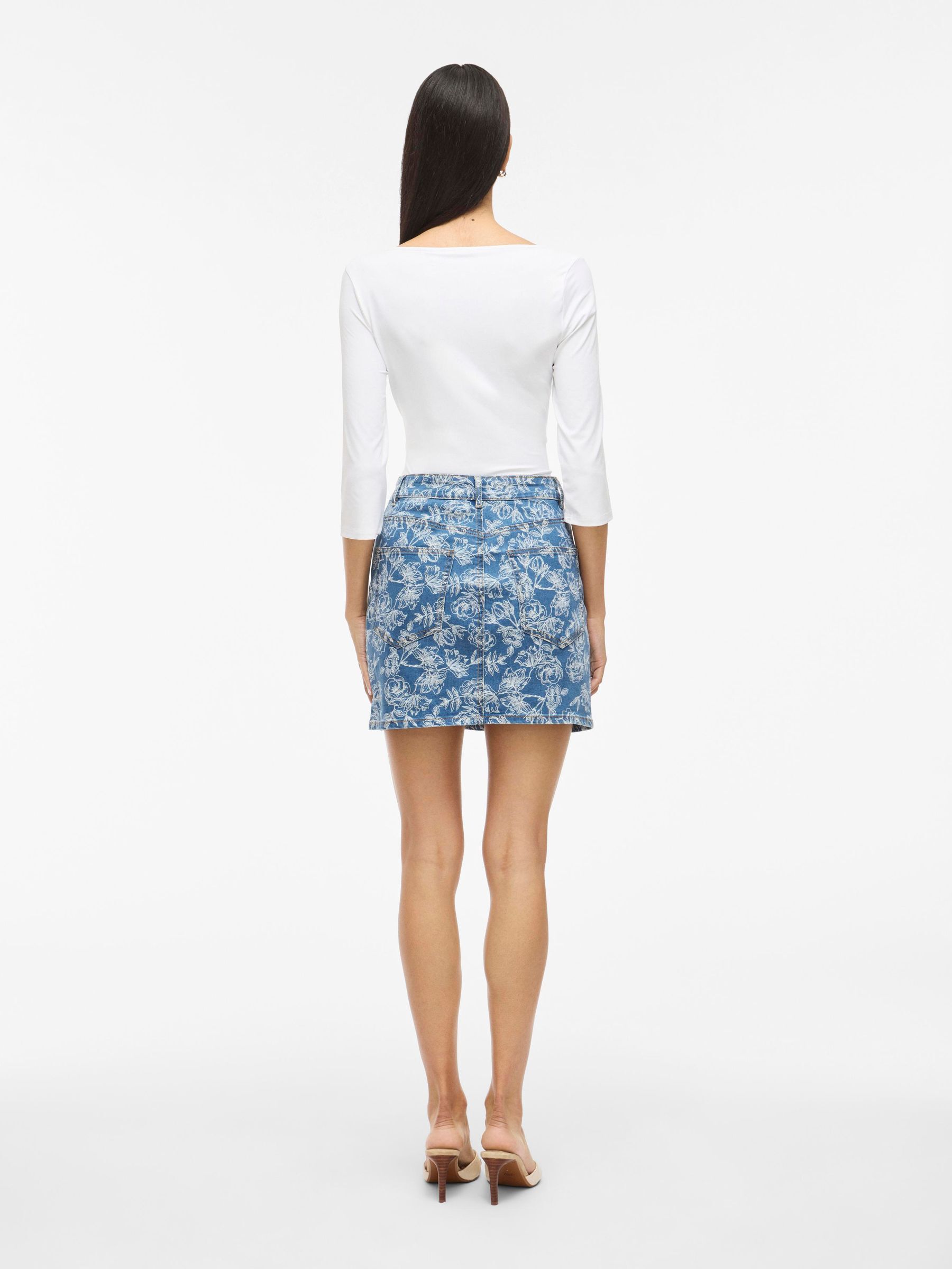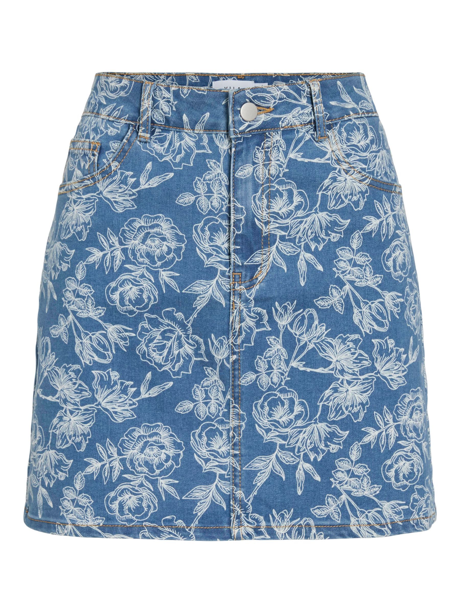 • Mini denim skirt• High waist• Zip and button fastening• Front and back pockets• Belt loops• All-over print• Regular fit• Length: 40 cm in size 38