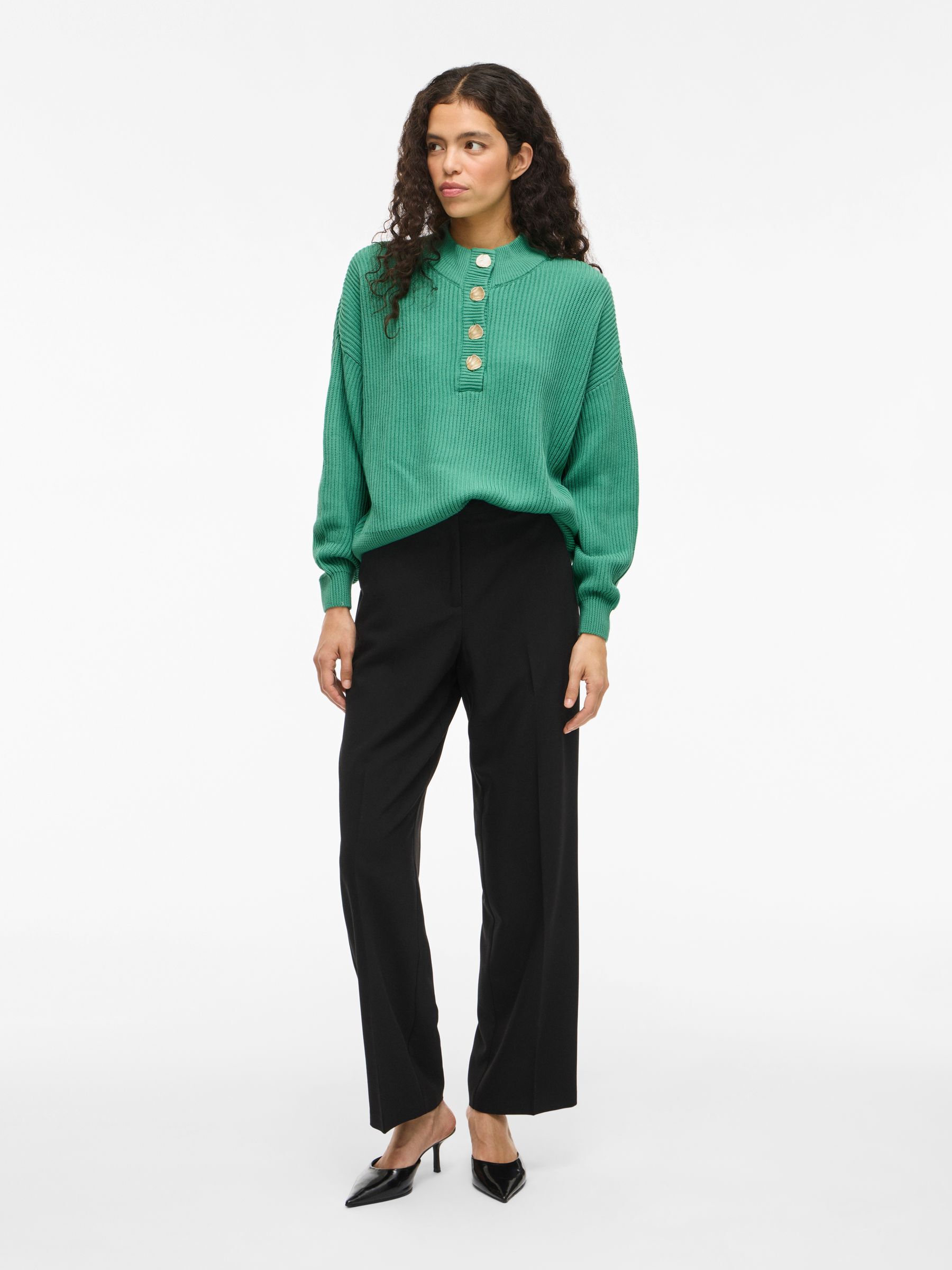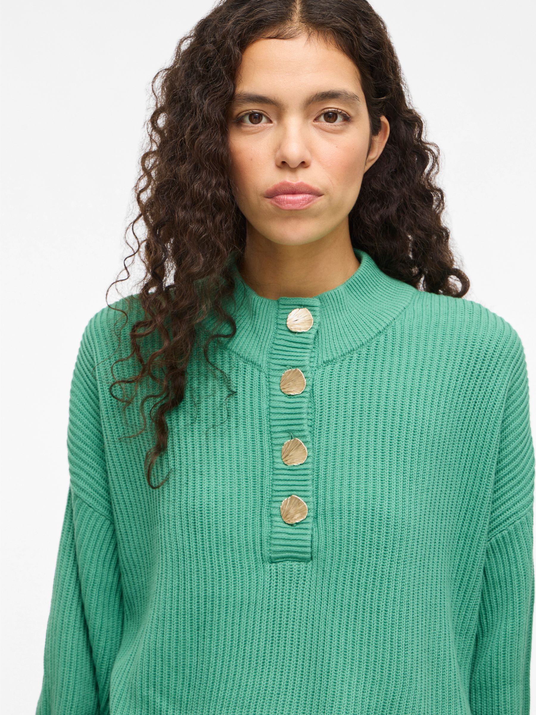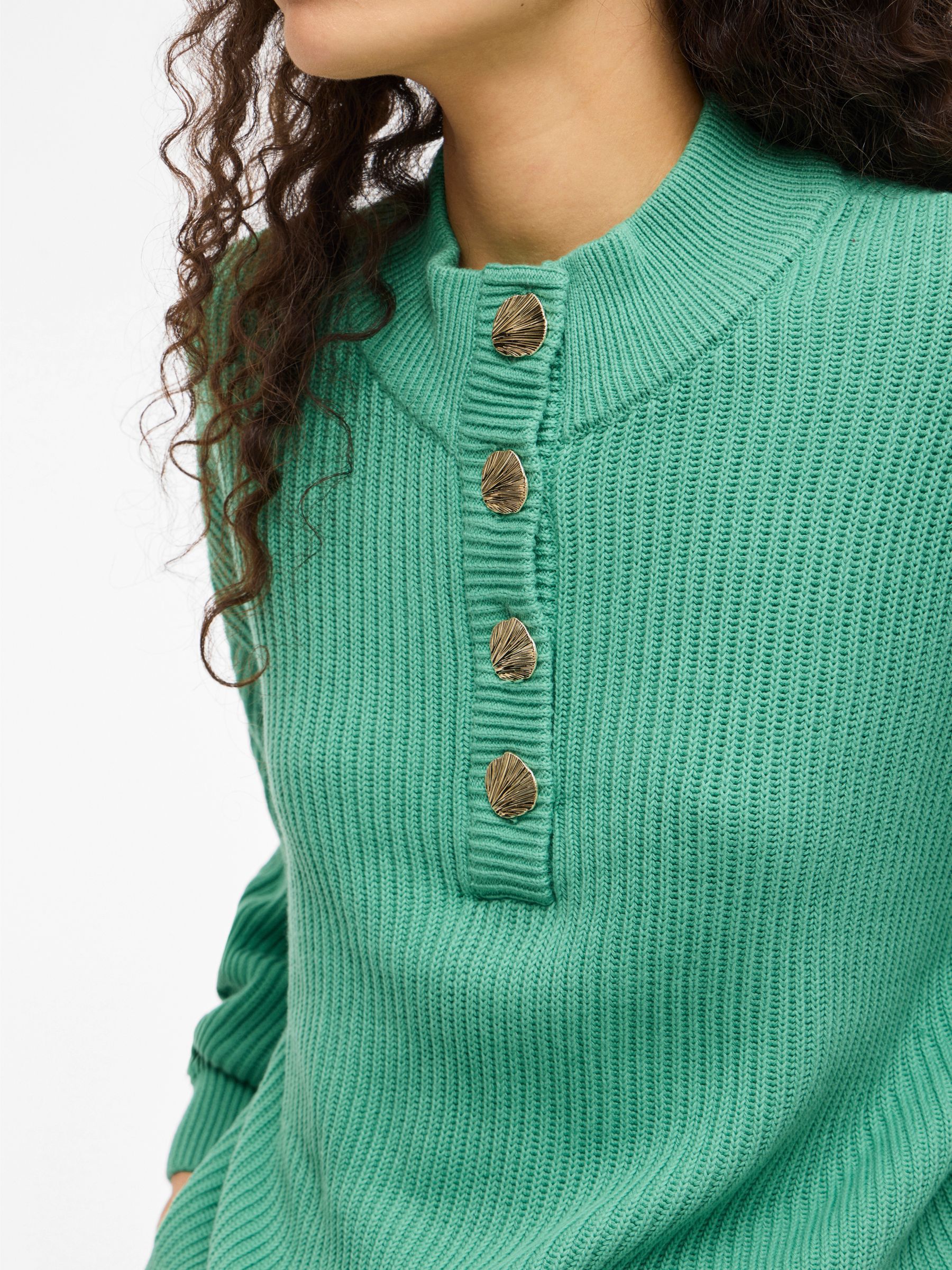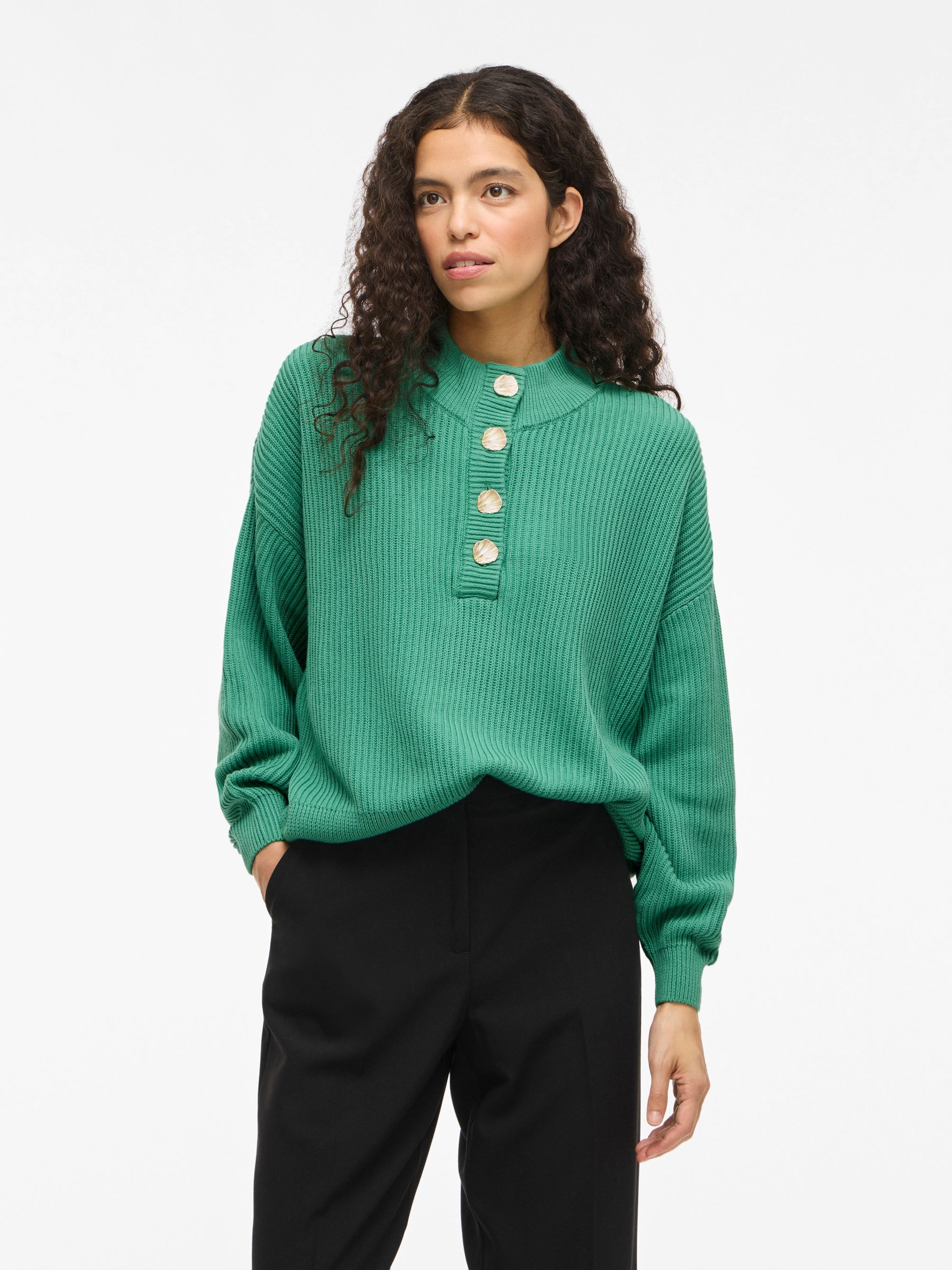 • Long sleeved knitted pullover• Dropped shoulders• Button fastening• Regular fit• Length: 57.5 cm in size M• Sleeve length: 64 cm in size M