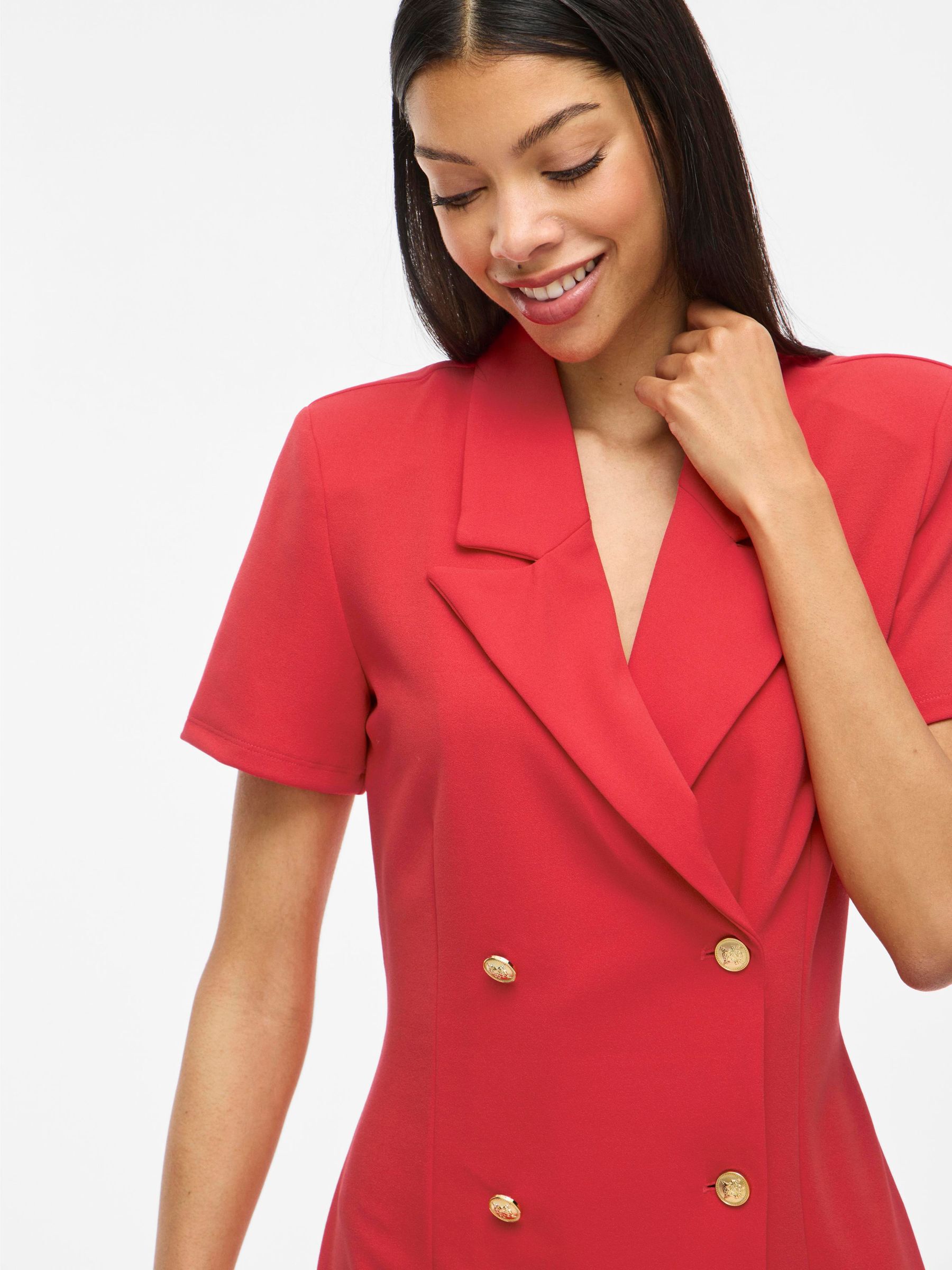 • Short blazer dress• Short sleeves• Padded shoulders• Front button fastening• Regular fit• Length: 92 cm in size M• Sleeve length: 20 cm in size M