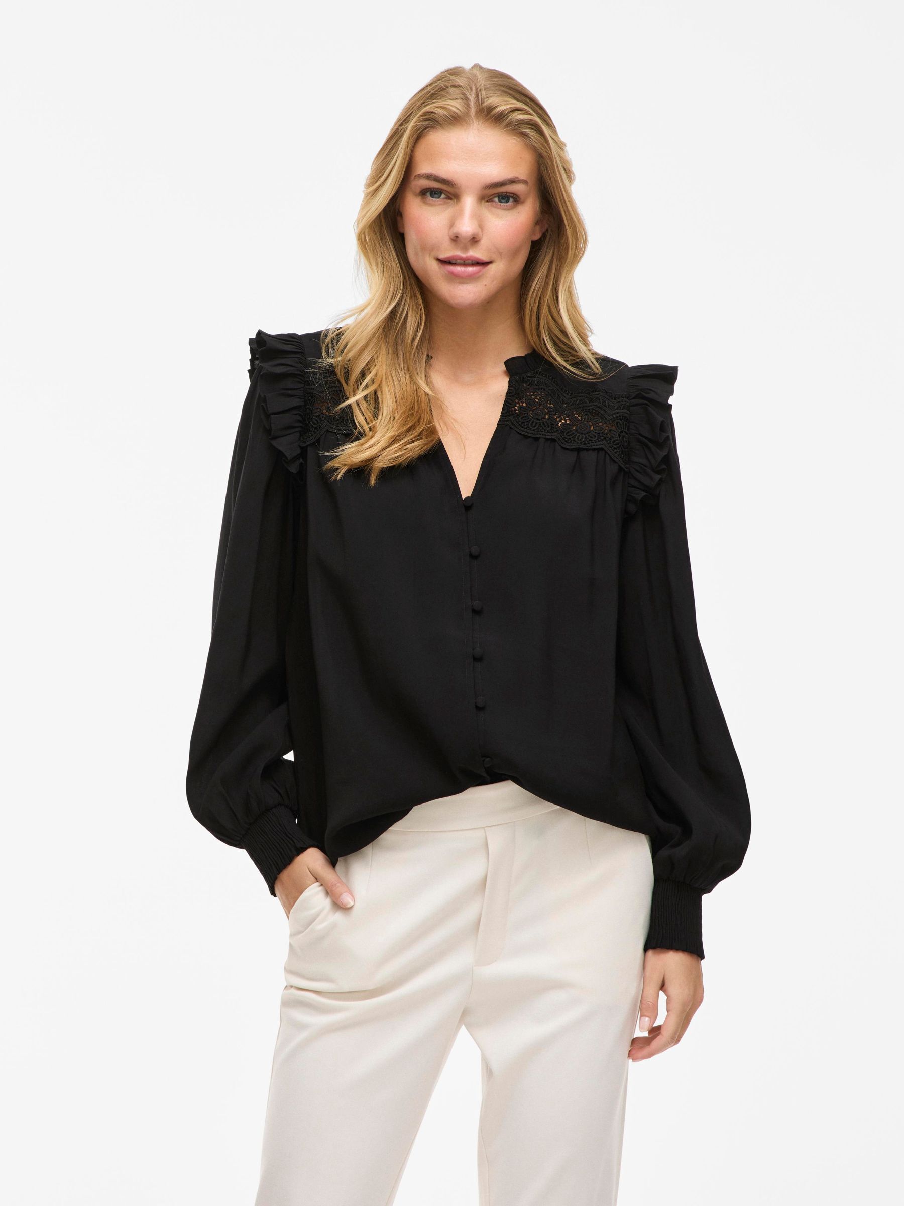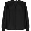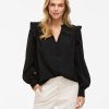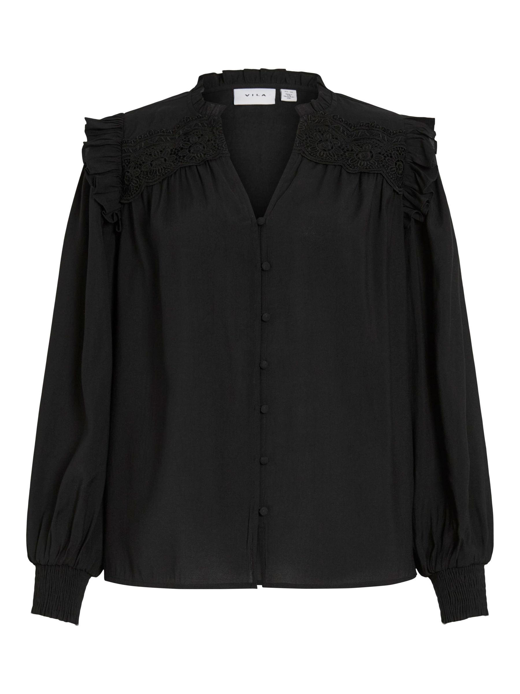 • Long sleeved shirt with ruffle details• Split neck• Front button fastening• Light, non-stretchable fabric• Regular fit• Length: 68 cm in size 38• Sleeve length: 10 cm in size 38