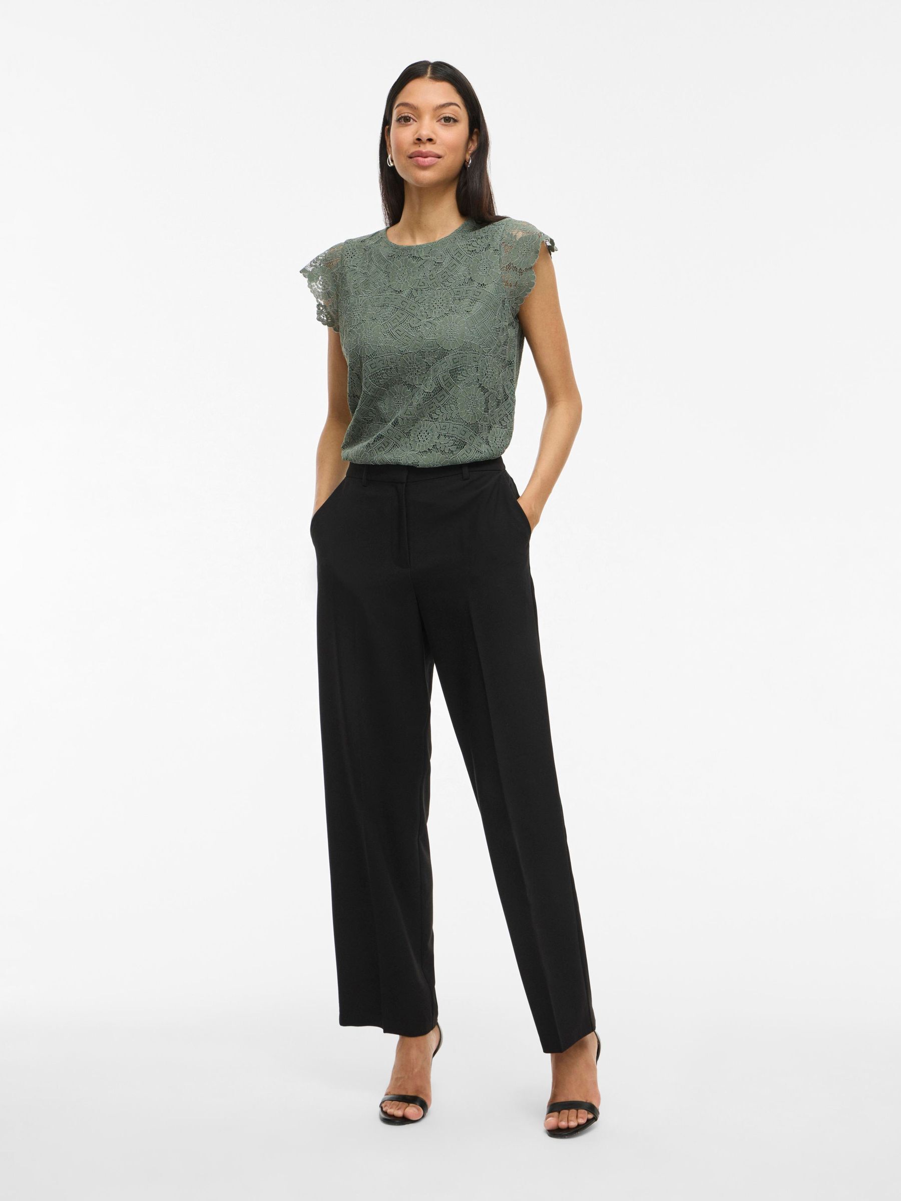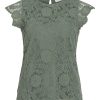 • Short sleeved lace top• Round neck with button-keyhole fastening• Lined body with sheer overlay• Regular fit• Length: 62 cm in size M• Sleeve length: 9 cm in size M