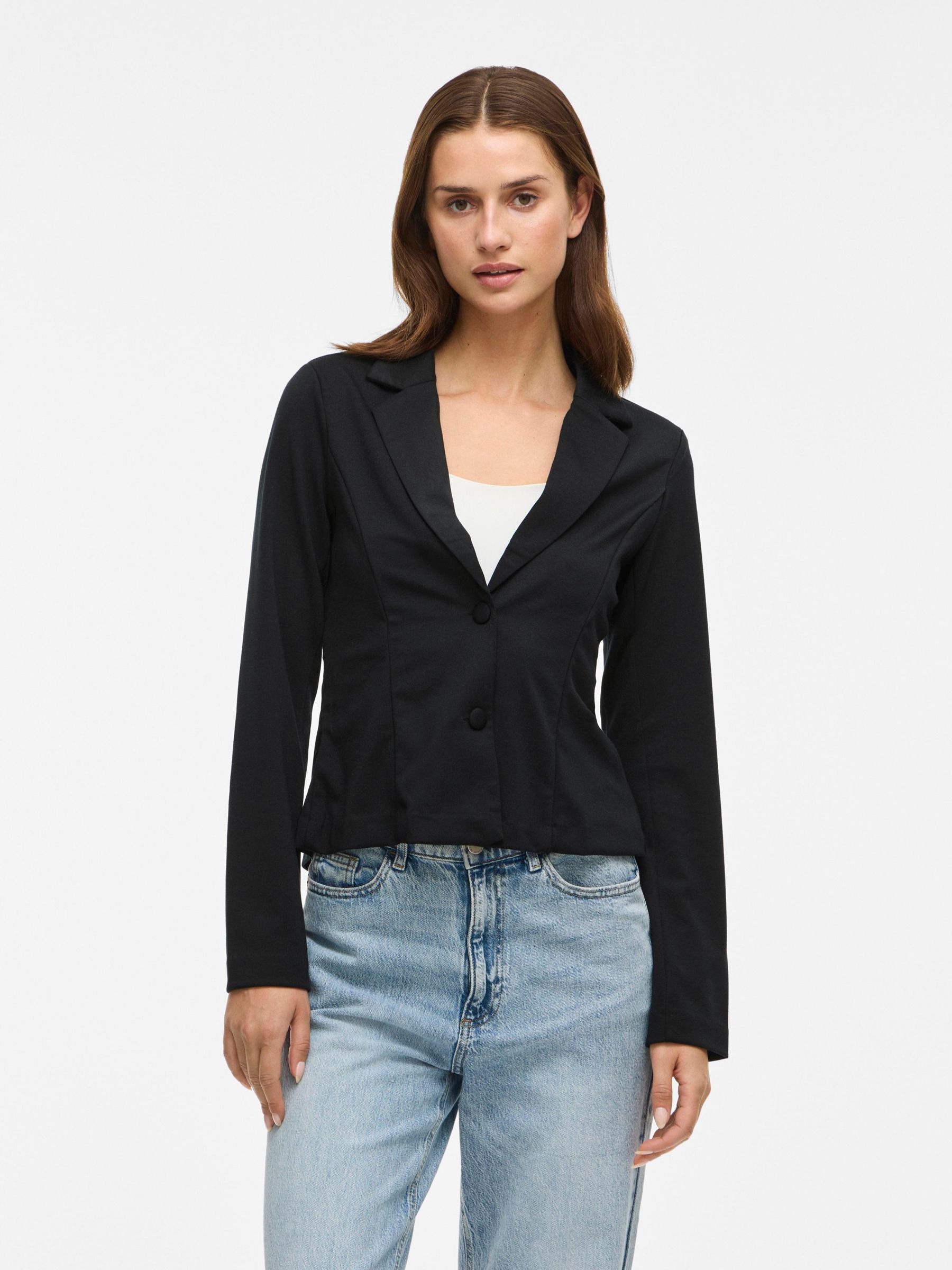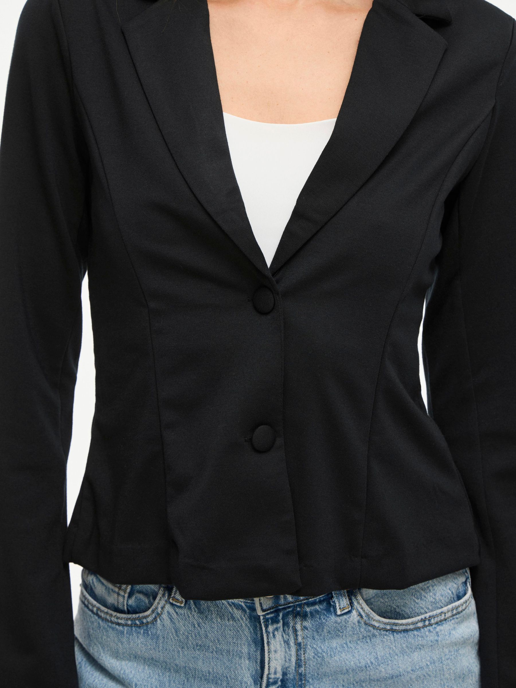 • Fitted jersey blazer• Front button fastening• Padded shoulders• Soft fabric• Slim fit• Length: 62 cm in size M• Sleeve length: 66 cm in size M