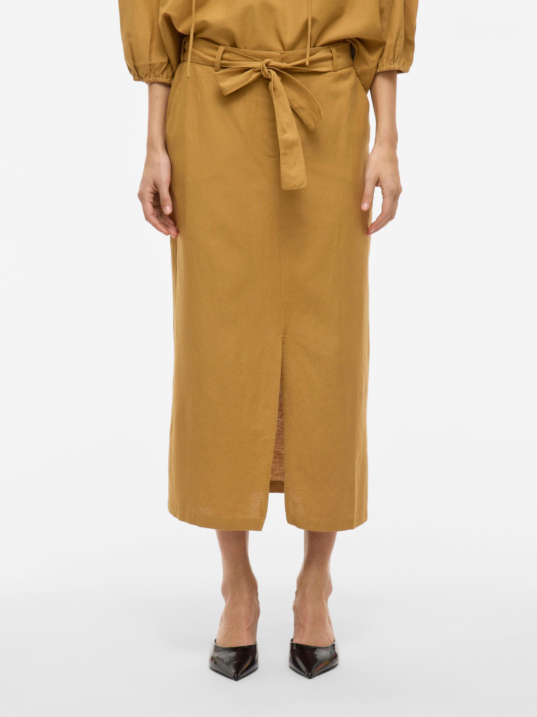 • Midi pencil skirt• Front slit detail• Zip-up fly with hook and button fastening• Stretch-back waist• Side pockets• Belt loops with removable belt• Includes linen• Regular fit• Length: 88.5 cm in size 38