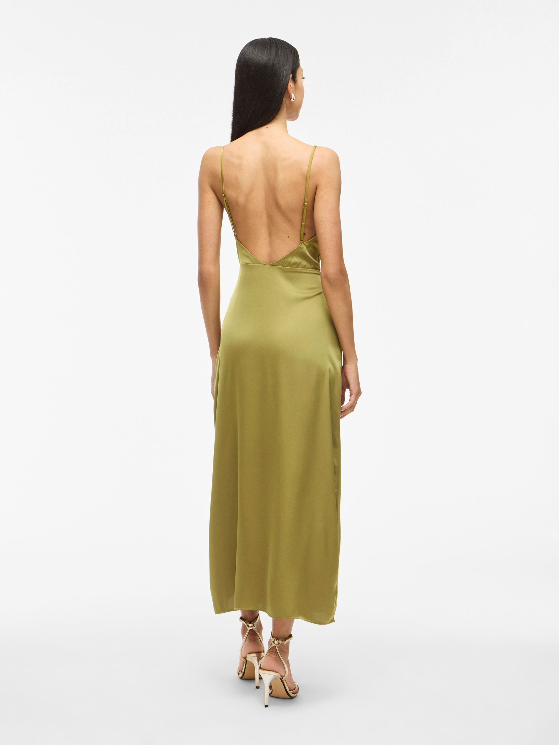 • Maxi occasion dress with adjustable straps• Cowl neckline at the front• Open back• Concealed side zip fastening• Cutline at waist• Shiny, non-stretchable fabric• Length: 136 cm in size 38