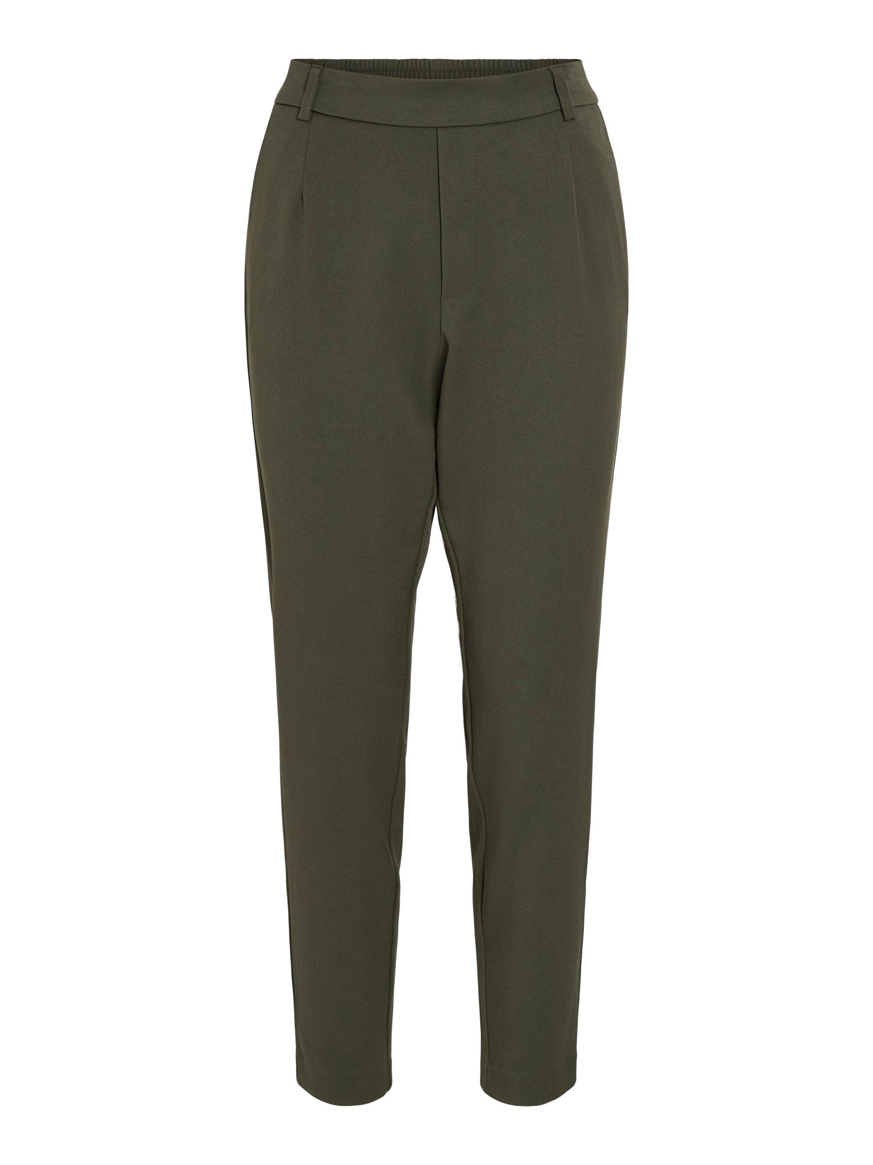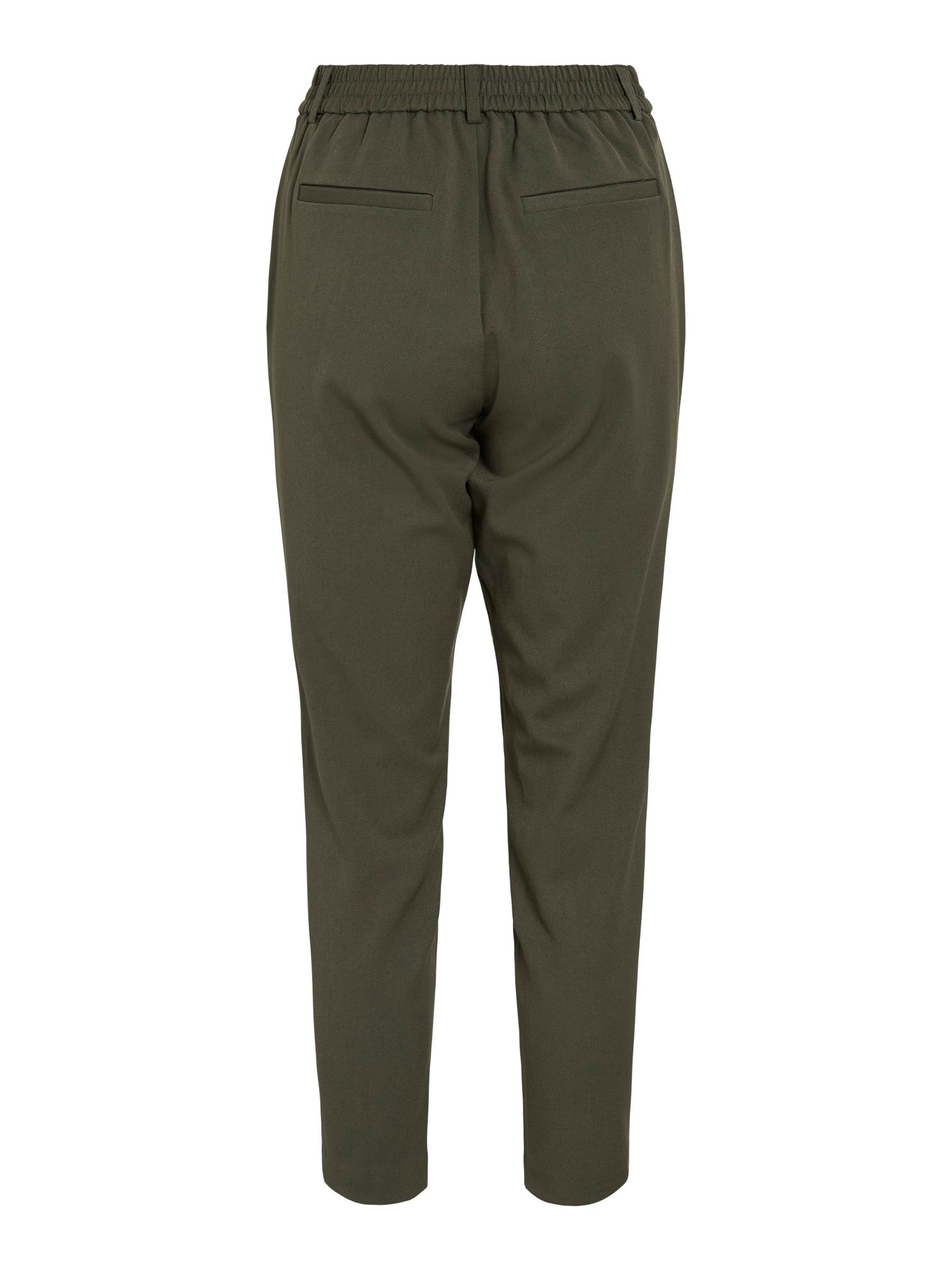 – High waist pants- Stretch-back waist- Faux zip fastening- Side pockets- Decorative back pockets- Belt loops – Straight, slim fit- Inseam: 69 cm in size 38- Frontrise: 28 cm in size 38