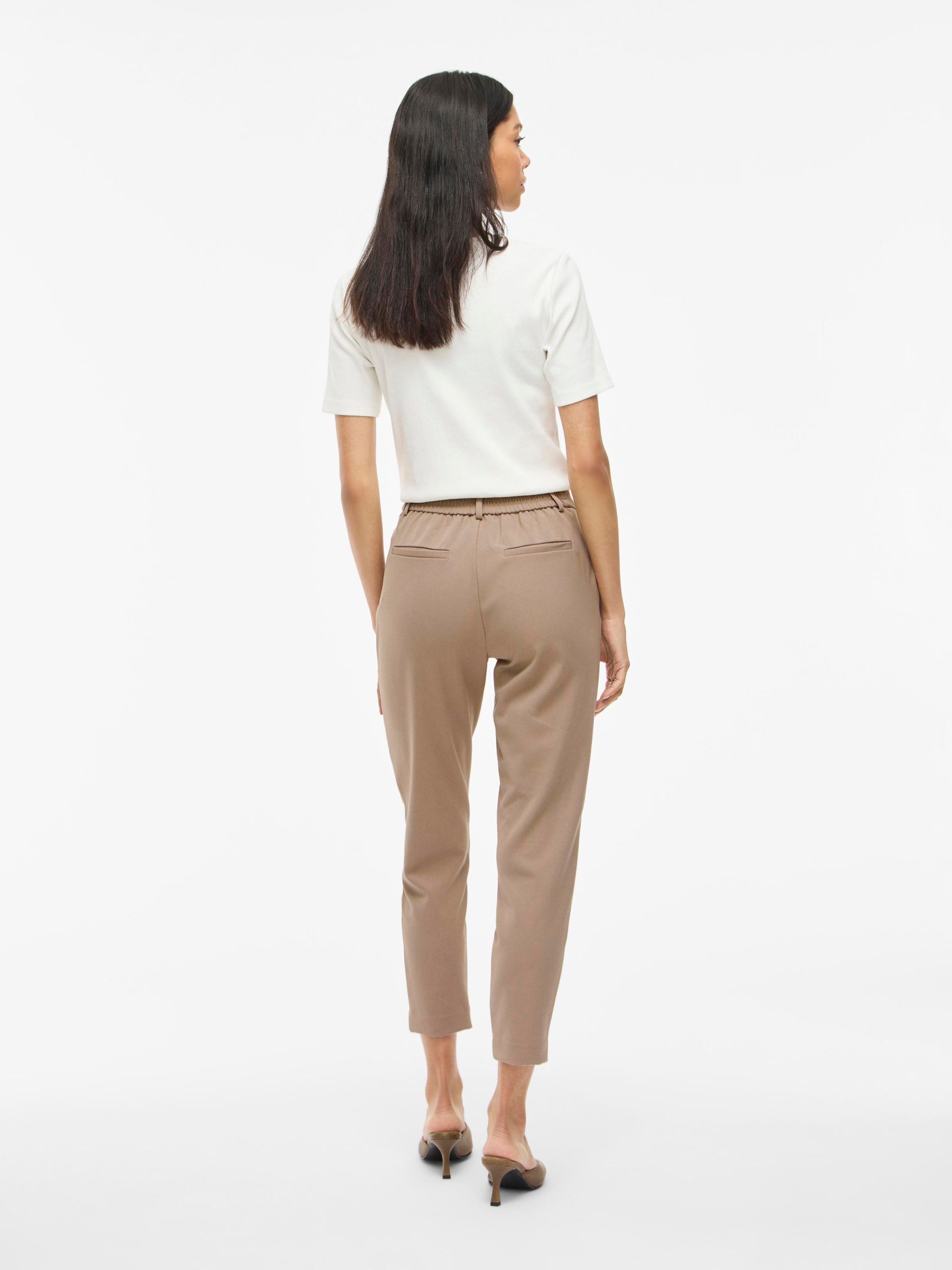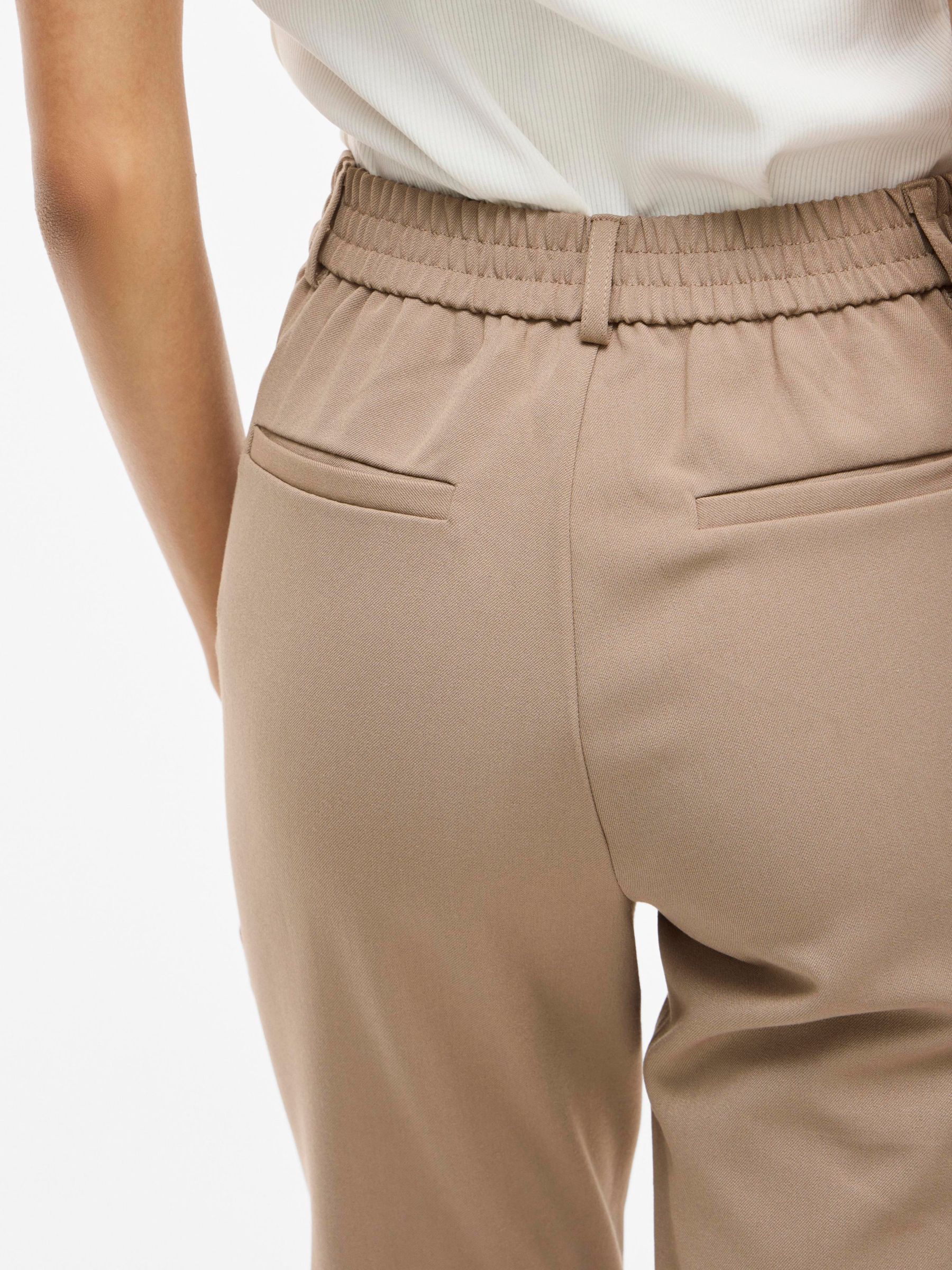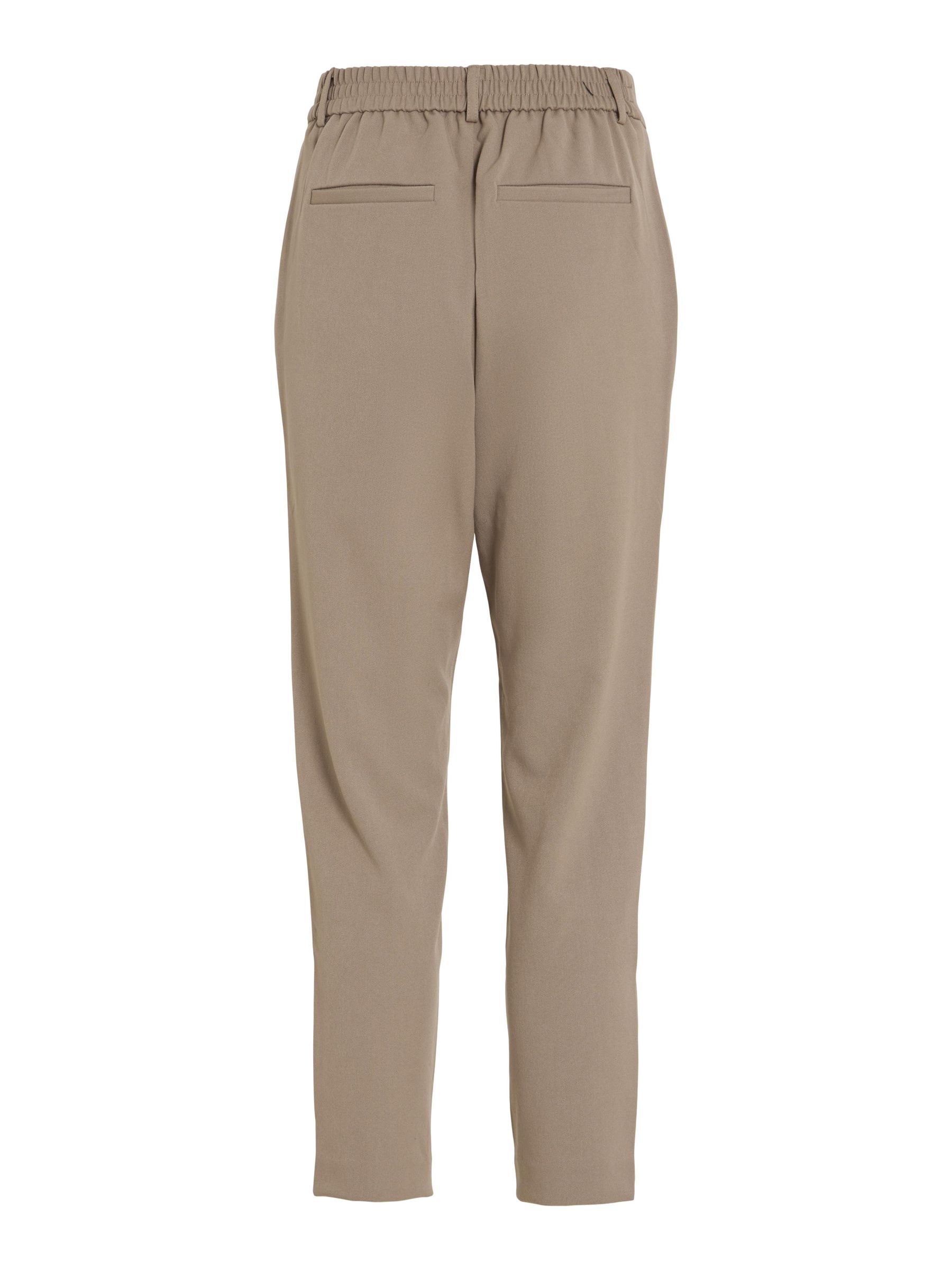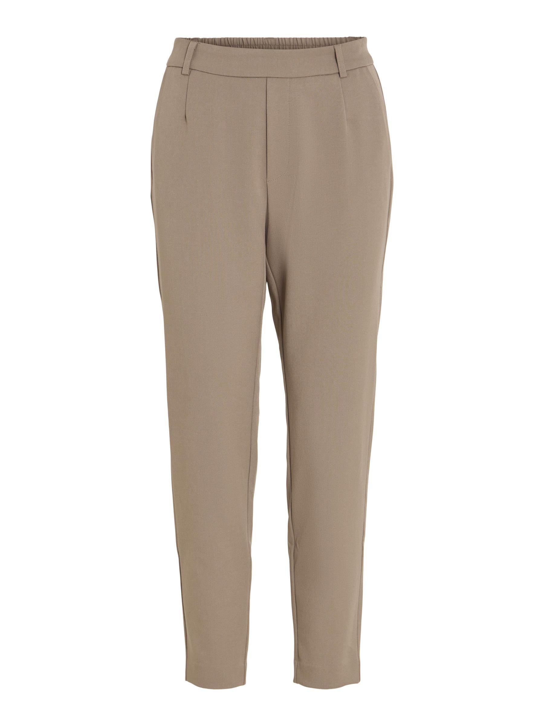 – High waist pants- Stretch-back waist- Faux zip fastening- Side pockets- Decorative back pockets- Belt loops – Straight, slim fit- Inseam: 69 cm in size 38- Frontrise: 28 cm in size 38