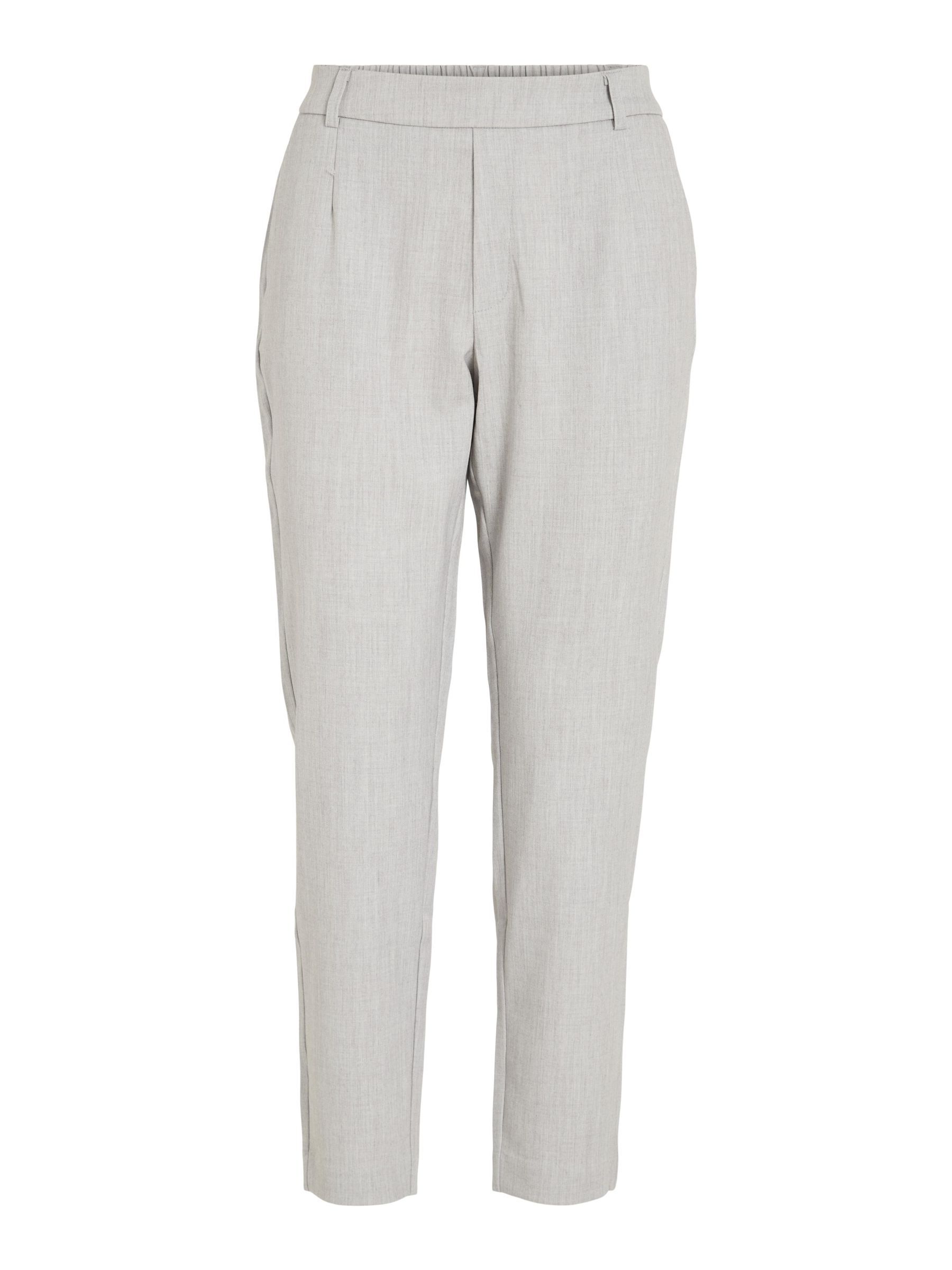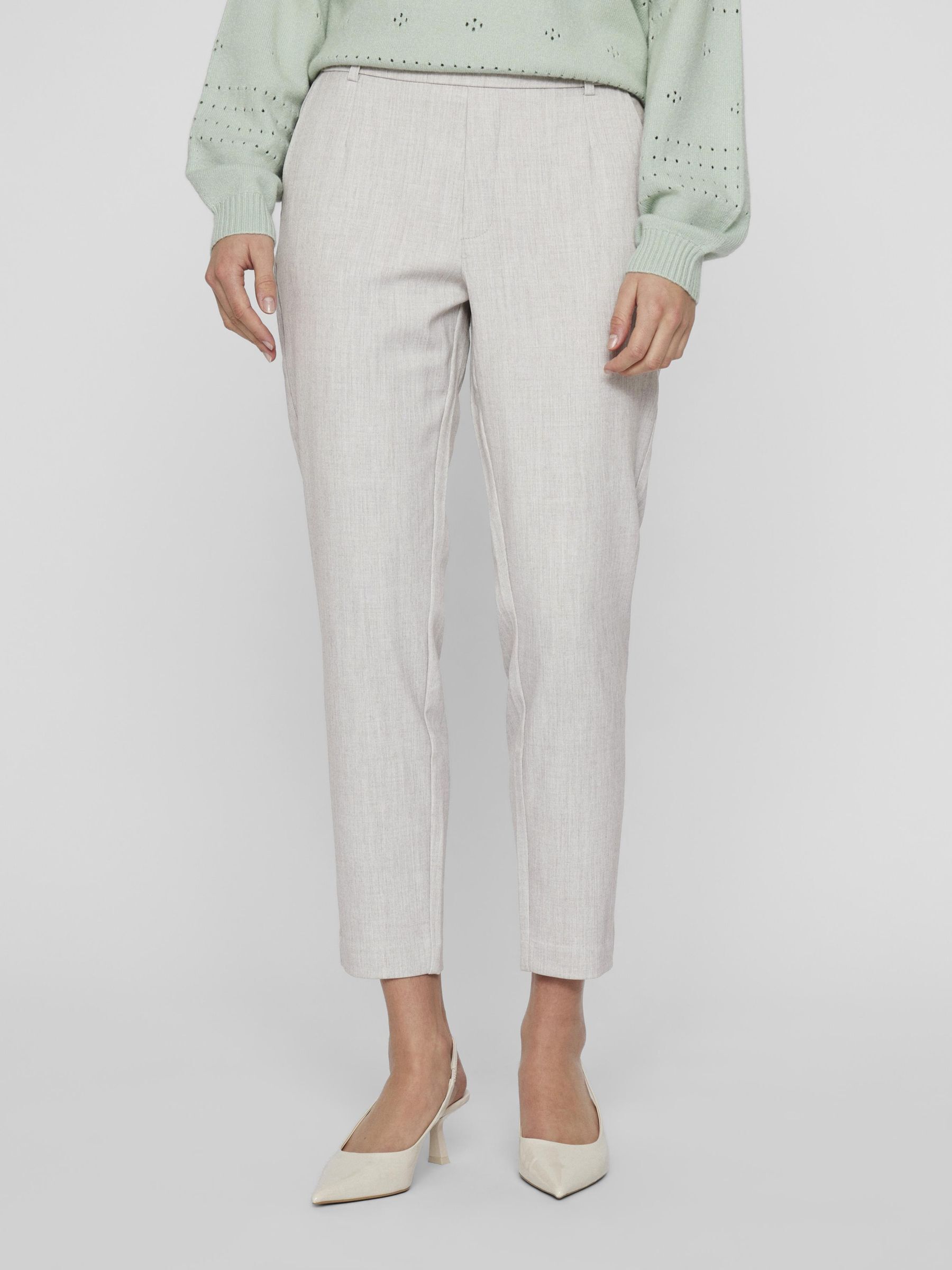 – High waist pants- Stretch-back waist- Faux zip fastening- Side pockets- Decorative back pockets- Belt loops – Straight, slim fit- Inseam: 69 cm in size 38- Frontrise: 28 cm in size 38
