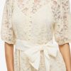 • Midi lace dress• Short sleeves• Round neck• Elastic cuffs• Tie waist with removable belt• Comes with inner strap dress• Regular fit• Length: 115 cm in size M• Sleeve length: 35 cm in size M