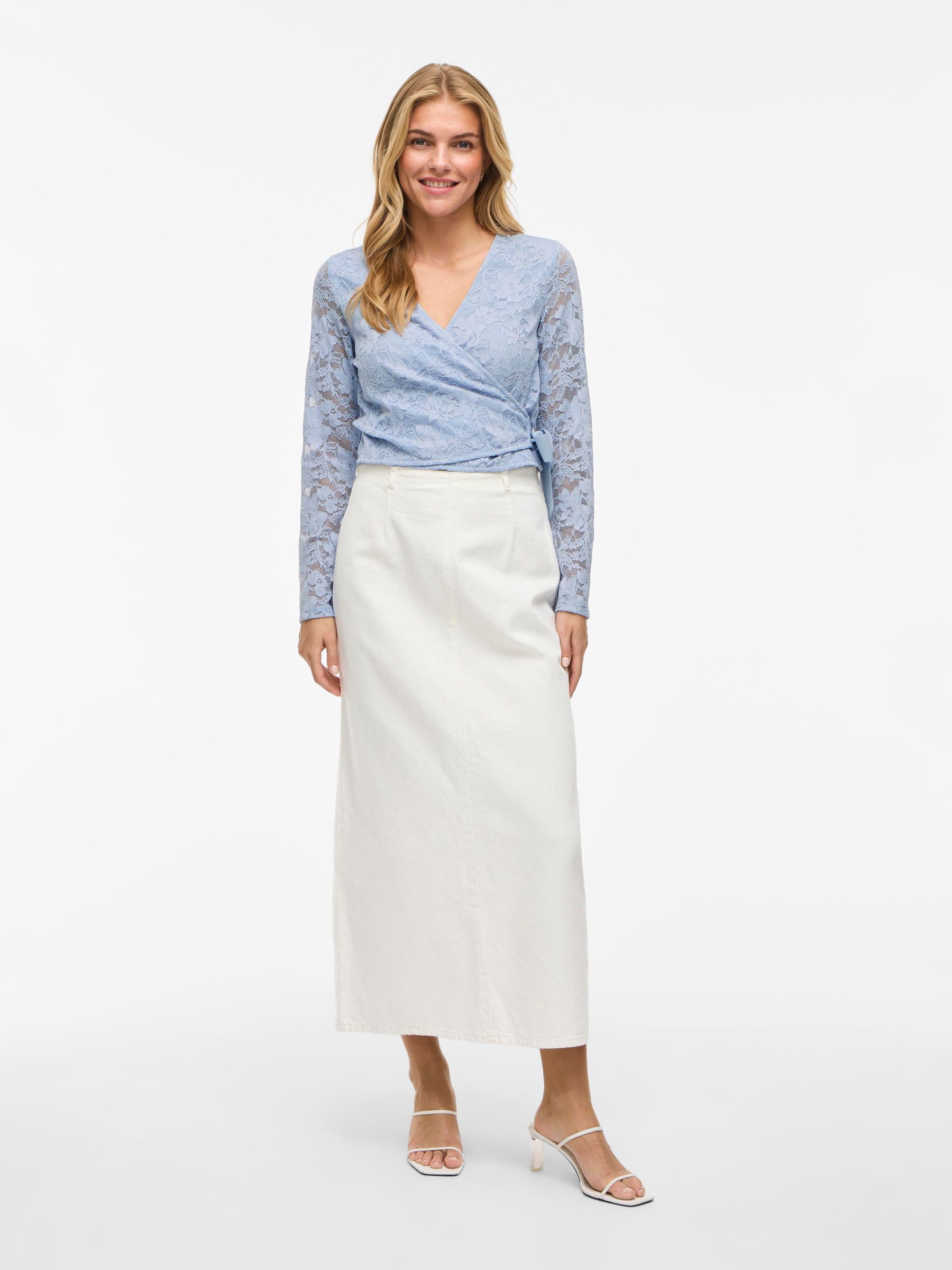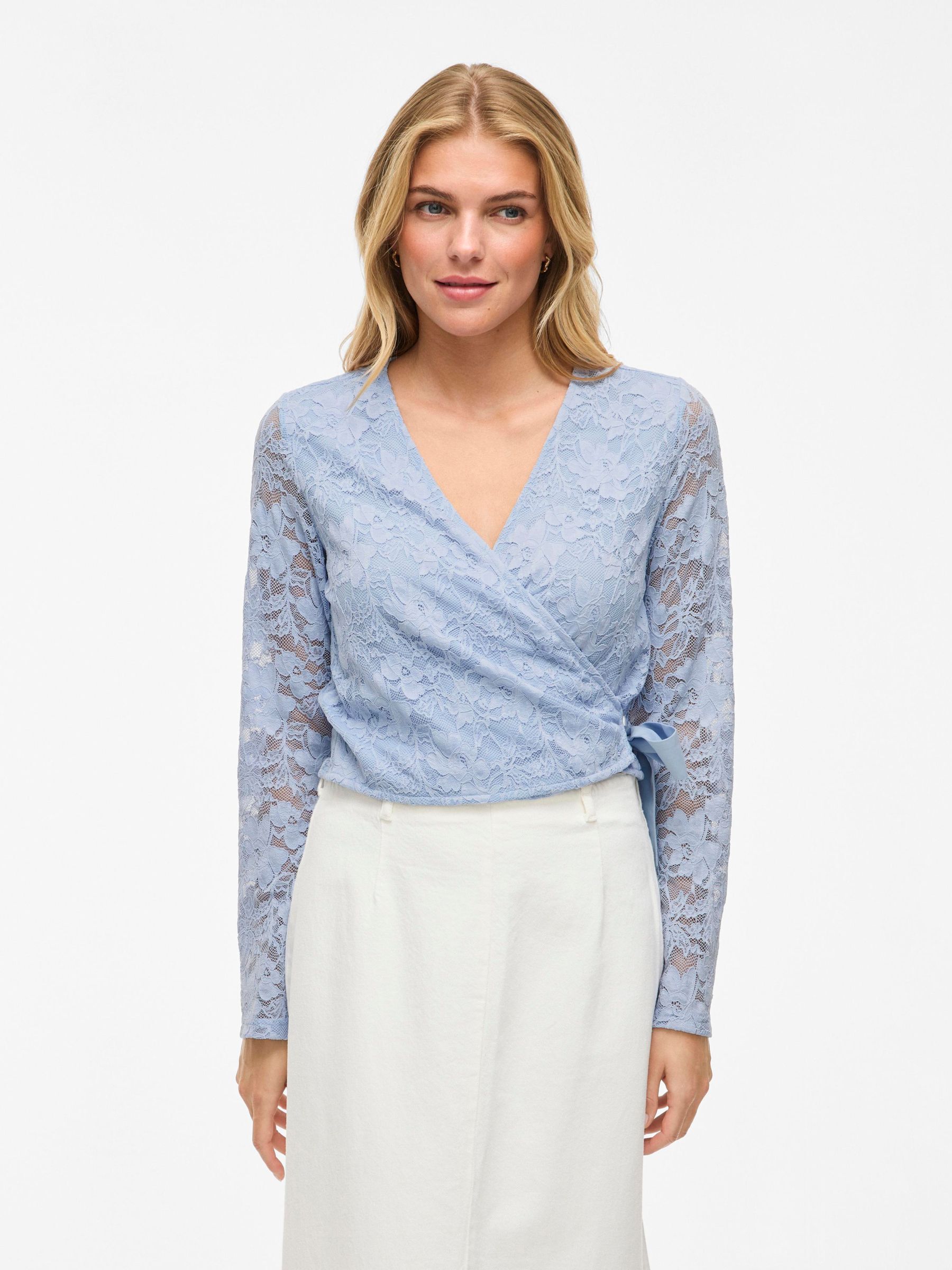 • Long-sleeve lace wrap top• V-neck• Lined body with sheer overlay• Regular fit• Length: 48 cm in size M• Sleeve length: 65 cm in size M